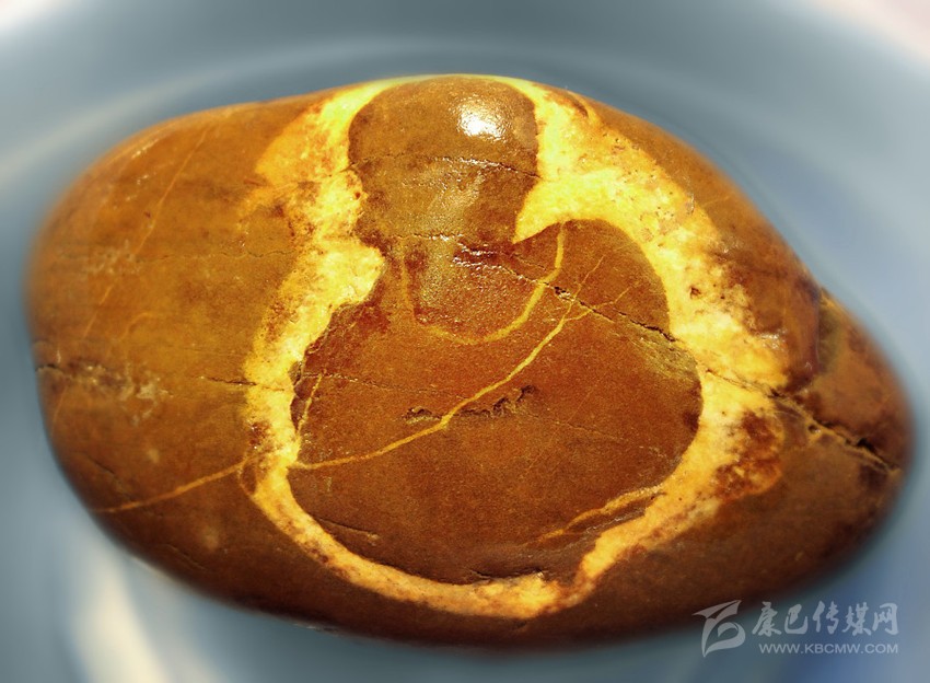 作為一個無組織的業(yè)余獨(dú)行淘石者,經(jīng)過數(shù)年的摸、淘、琢磨,我悟出:發(fā)掘趣石最重要的是要獨(dú)具慧眼慧心,會讀石紋。是否讀懂石紋,決定著一塊石頭是頑石還是奇石的命運(yùn)。這是一件很難的事,不僅要運(yùn)用你獨(dú)特的審美視角,還得發(fā)揮你豐富的想象。有時,為了讀懂一些石紋,我會抱著這塊石頭如考古學(xué)家般仔細(xì)琢磨,從正面、側(cè)面,再到背面,又從左邊旋到右邊,或者上下顛倒來打量……一番冥思苦想,會意會神,直到靈感涌起、慧心頓悟,尤如洞天石扉訇然中開,眼前的頑石拙巖,頃刻便化為藝術(shù)珍寶,令我欣喜若狂。正如悉達(dá)多說:“這塊石頭是石頭,它也是動物,也是神,也是佛,我敬重它和熱愛它,并非因為它有朝一日會變成這個或那個,而是因為它早就是這一切,一直是這一切?!背錆M靈性的石頭在你和美妙的自然間搭起了一座通靈的橋梁。淘得趣石,還需緣分。就像人與人的相遇講究緣分,遇到心儀的石頭也講究緣分天助。有年春節(jié),我與父親去河邊轉(zhuǎn)游,面對涪江寬闊的石灘,我的淘石癮又犯了。但出門前答應(yīng)過父親,這次只逛不撿石頭。我知道老爸心疼我一個女子大過年的撿石頭。河邊冷,且石頭扛起來很重,手與衣服都會弄得很臟。我邊陪父親漫走閑聊,眼睛卻止不住往河灘逡巡,仍希望無意中淘到中意的石頭。走著走著,我發(fā)現(xiàn)有一群鳥歡唱著從遠(yuǎn)處一個石堆飛起,冥冥中感覺那里有寶貝,遂向老爸懇求,過去看一下就回來。來到那個石堆中心,幾乎不費(fèi)什么功夫,就看到一塊橢圓形石頭上有著一個自帶金色佛光圈的如來佛半身像。我怔住了,有點(diǎn)不敢相信如此幸運(yùn),蹲在那里久久打量。老爸隨后趕過來,看到佛像石,連連贊嘆了好幾句“太神奇了”。然后,他毫不猶豫地就幫我把石頭搬起來就走。回到家中,如獲至寶的我,趕緊清洗石頭,在清水的滋潤下,佛像的輪廓更加清晰。頸上的佛珠、袈裟線也分明,細(xì)看令人叫絕的這竟是一尊三面佛:正面、左側(cè)向、右側(cè)向均是佛。而在此石背面,也清晰出現(xiàn)了一個草書的“吉”字,真令人喜出望外。吉佛石,就這樣神奇地走進(jìn)了我的生活,讓我相信一切緣分都是可遇不可求的。
