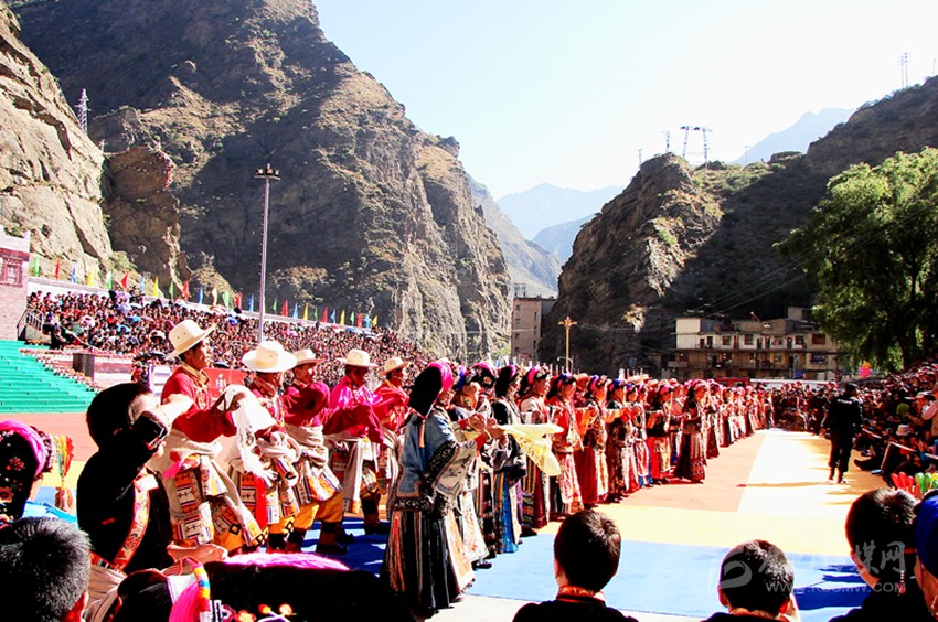 行不多時(shí),一座美麗的村寨就出現(xiàn)在面前。眼前,一幢幢白色的藏房就散落在這如如世外桃源般的山坳里,它就是有著歌舞之鄉(xiāng)美譽(yù)的宅龍村寨。山寨中央,一條小徑將整個(gè)村寨一分為二,小徑以上的村寨為上宅龍,小徑以下的為下宅龍。因?yàn)檫@里曾是守備千總的衙門駐地,因此,與周邊使用嘉絨藏語的村寨比較,這里的人們習(xí)慣使用嘉絨藏語中的敬語交流,其語調(diào)柔和,語速較緩。這里的鍋莊舞獨(dú)樹一幟,服飾更是一絕。