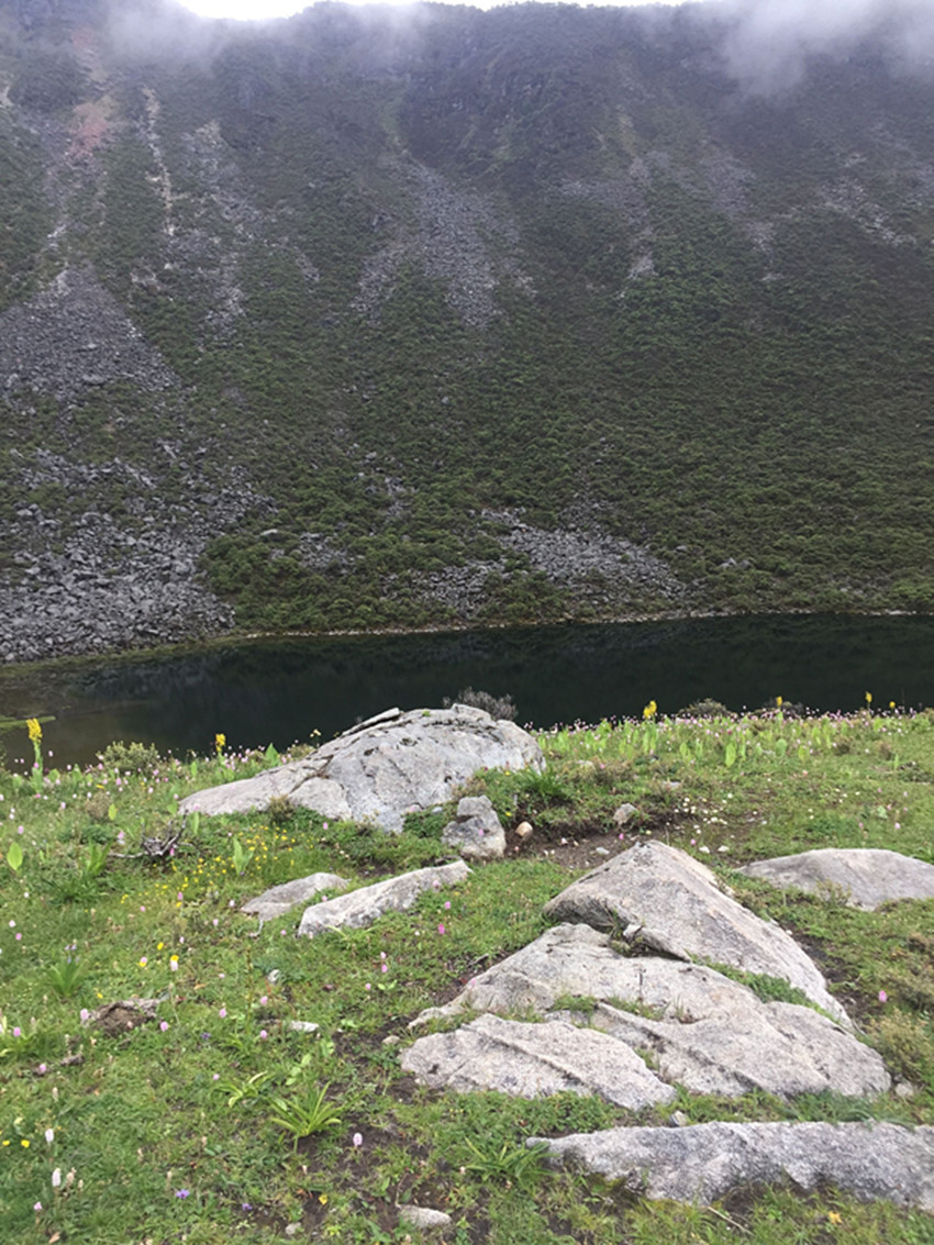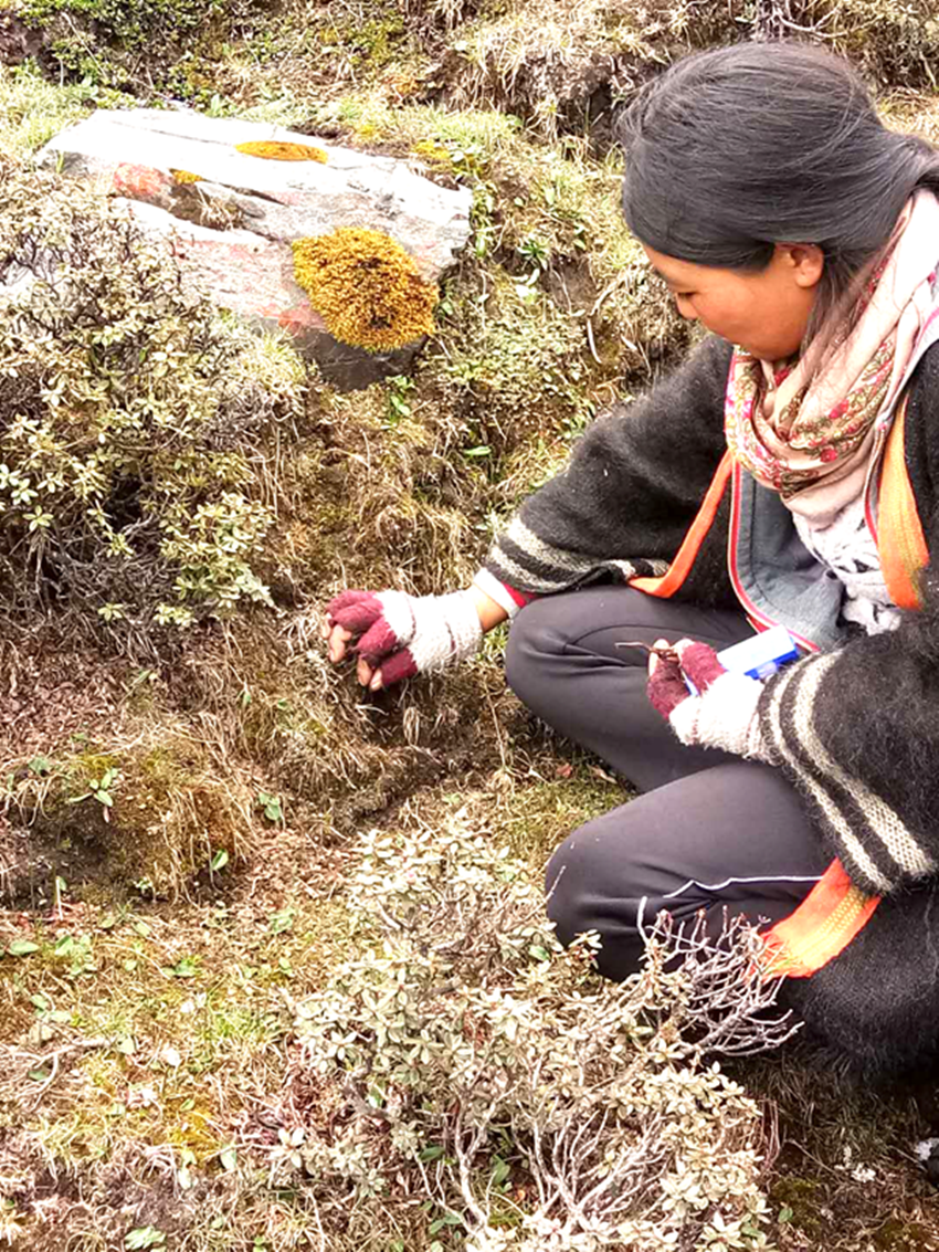 銀珠做完這個(gè)莊重的祈禱儀式,才從包里取出一個(gè)裝糖豆的鐵盒子,小心地將它放進(jìn)盒子蓋上,揣進(jìn)衣兜里。她重新埋好挖出的土,接著爬向了一叢叢小杜鵑,它們散發(fā)著淡淡的苦澀味,使她放慢了爬行的速度,細(xì)細(xì)尋找著干草木葉中的那些獨(dú)特菌類。她的手和膝蓋被雪水浸濕了,也不覺(jué)寒冷,自己像是其中的一種生靈。不一會(huì)兒,她就看到了好幾只蟲(chóng)草的尾巴露在草皮上,它們的樣子分明是在歡喜奔跑,見(jiàn)到有人靠近倏忽間就停止下來(lái)了,令她忍不住發(fā)出了噗嗤一聲笑。南吉聽(tīng)到這聲音,抬頭朝銀珠的方向看去,只見(jiàn)滿山的花草都在微風(fēng)中輕輕顫動(dòng)。南吉看到銀珠許久沒(méi)有挪動(dòng),便知道她找到了自己的纖草堂子……