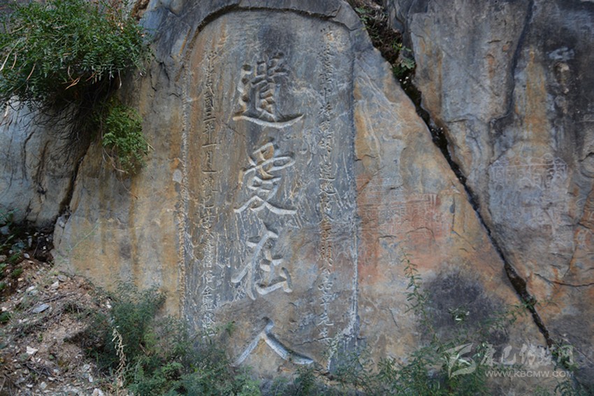 《纜轡澄清》:在《遺愛在人》左上方的石壁上,為民國年間四川邊軍代理分統(tǒng)高德翼題,攬轡:拉住馬韁。澄清:平治天下。表明了其澄清天下的抱負(fù)。由于雨水侵蝕,已不是很清晰了。