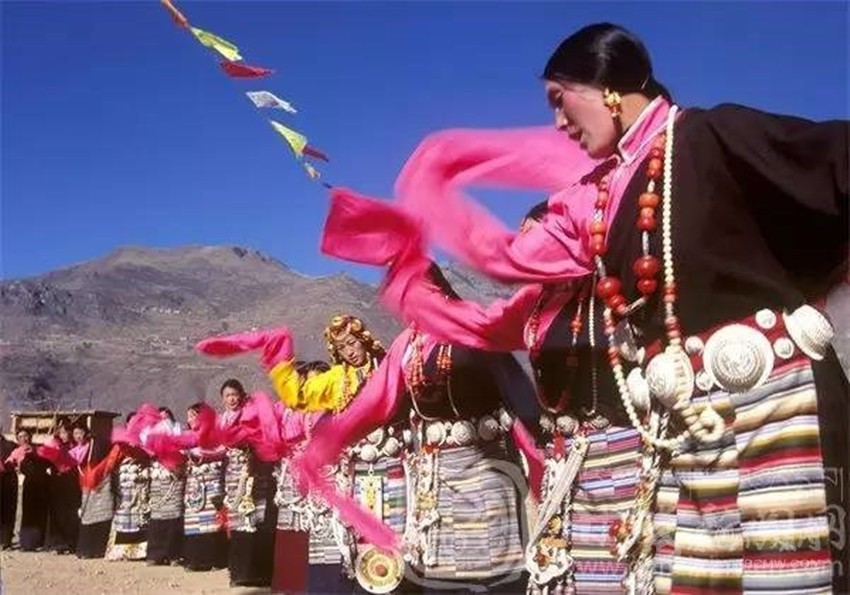 新龍鍋莊享譽(yù)藏區(qū),被譽(yù)為中國(guó)鍋莊之鄉(xiāng)。新龍鍋莊獨(dú)樹(shù)一幟,風(fēng)格與其他藏區(qū)的鍋莊迥異。新龍鍋莊據(jù)說(shuō)是在格薩爾時(shí)代,有一位會(huì)唱山歌的商人,名叫阿俄絨布,他游走經(jīng)商各地。每到一個(gè)地方,阿俄絨布總是一邊經(jīng)商,一邊唱著山歌。他來(lái)到新龍以后,就獨(dú)創(chuàng)了一種舞蹈,并傳授給當(dāng)?shù)厝?,這種舞蹈很快在新龍地區(qū)流行起來(lái)。由于新龍與世隔絕,這種舞蹈沒(méi)有外傳,發(fā)展成為現(xiàn)在的“新龍鍋莊”。