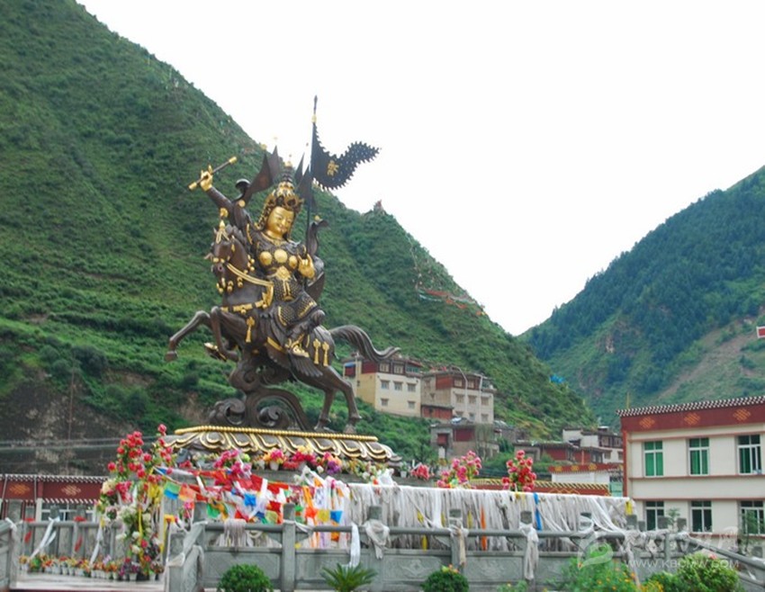 新龍是格薩爾走過(guò)的地方,當(dāng)?shù)厝藶榱思o(jì)念英雄格薩爾王,便修建了氣勢(shì)雄偉的格薩爾廣場(chǎng)。該廣場(chǎng)占地面積3705平方米,格薩爾青銅像高13米。據(jù)說(shuō),格薩爾青銅雕像的尺寸是嚴(yán)格按照著名藏學(xué)家、文學(xué)家、高僧居米·旁對(duì)格薩爾的研究所得出的結(jié)論。雕像四周格薩爾的30員大將威風(fēng)凜凜,栩栩如生,使格薩爾廣場(chǎng)威嚴(yán)肅穆。新龍縣農(nóng)牧區(qū)文化、生活變遷盡在浮雕中得到一一展現(xiàn),瞻仰格薩爾廣場(chǎng),一股濃厚的梁茹文化氣息撲面而來(lái)。