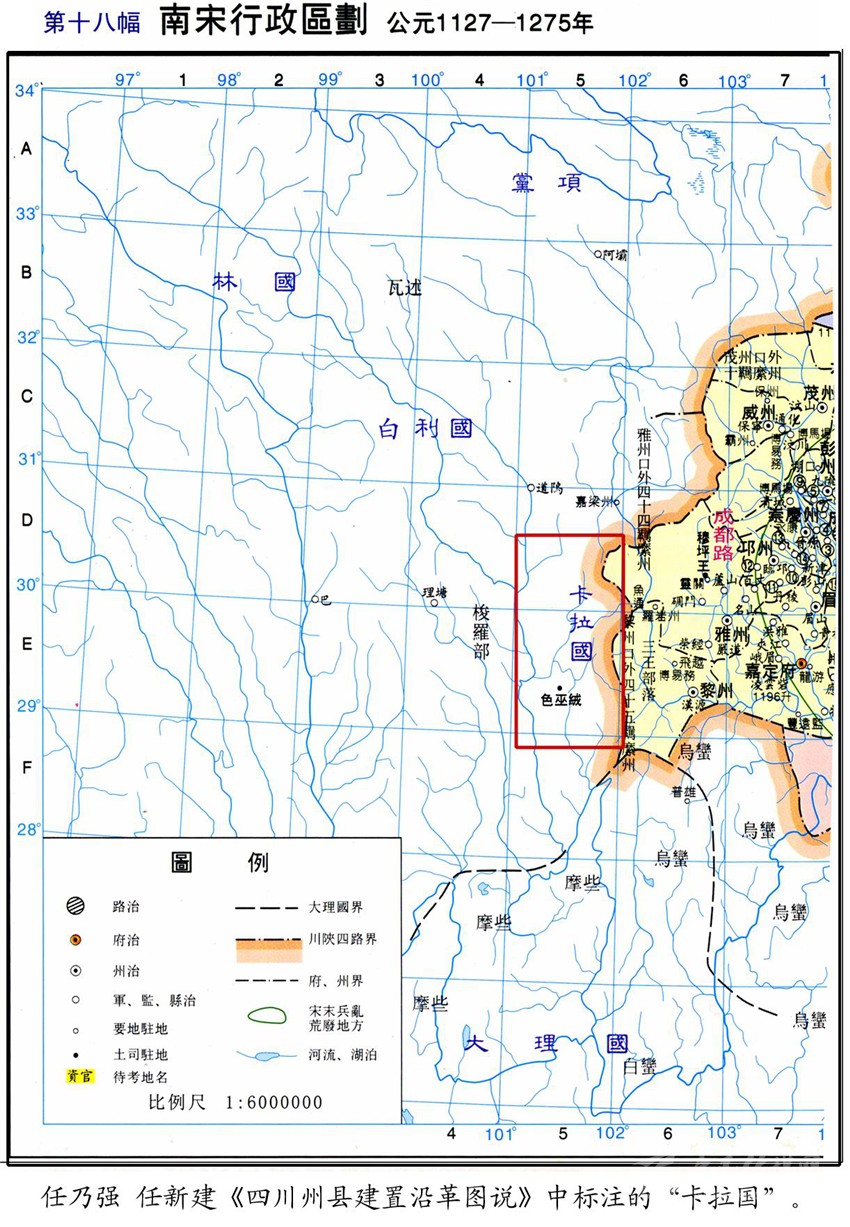 今屬康定縣的木雅,又分為上木雅和下木雅。下木雅的色烏絨地方,是木雅王曾住過(guò)的地方之一。民間又稱住在這里的王為“西吳甲布”(即“西吳王”),進(jìn)而又附會(huì)出個(gè)“西吳國(guó)”來(lái)。從木雅貢嘎西邊那條叫色烏絨的山溝往南到打箭爐,正如傳說(shuō)的那樣,早年一般要走三天?!对贰酚小昂任帷钡挠涊d,“喝吾”“色烏”都是藏語(yǔ)的音譯,藏語(yǔ)“絨”為山溝之意,指的就是這個(gè)色烏絨。元世祖忽必烈征滇,沿大渡河、金沙江而進(jìn),得到沿途部落首領(lǐng)的大力支持。長(zhǎng)河(大渡河)西的“西吳王”自然也不例外。所以在至元四年(公元1267年)“冬十月壬戌,魚通巖州等到處達(dá)魯花赤李福,招諭西番諸族酋長(zhǎng)以其民入附,以阿奴版的哥等為喝吾等處總管,并授璽書及金銀符?!钡玫缴w有皇帝大?。ㄓ癍t)文書和金銀符,朝廷正式任命為“喝吾”總管的酋長(zhǎng)(木雅王)阿奴版的哥,之后從色烏絨遷到打煎爐,不僅成為朝廷認(rèn)可的“長(zhǎng)河西土官”,還作了“四川分省右丞”。我們是否可以判定,“木雅王”遷爐的時(shí)間應(yīng)在至元四年(公元1267年)之后?1267年距今740多年,以此推算,如前文所說(shuō):今天西爐(康定城)的歷史,大約為700年!再者,若從宋代的“卡拉國(guó)”算起,說(shuō)“明正”歷四十二代,不能說(shuō)沒(méi)有一點(diǎn)來(lái)頭。