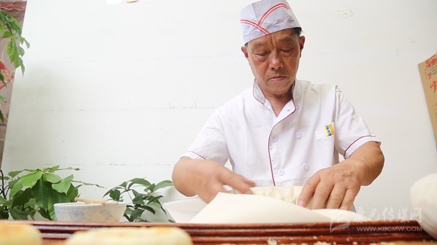 具體制作步驟分為做餡、起酥、做點(diǎn)心皮、制作酥皮、揉搓成坯、烤制等六道工序。其最具特色的“酥皮”,烹制技藝尤為精細(xì),需經(jīng)起酥、制皮、制酥皮多個(gè)環(huán)節(jié),在制作中,首先用精制面粉加熬制好的豬油適合比例混合后反復(fù)揉搓,并制成長(zhǎng)方形面團(tuán)備用;隨后用面粉加豬油,加入沸水晾曬至稍低溫度時(shí)反復(fù)鞣制一個(gè)小時(shí),直到拉扯面團(tuán)不粘手且發(fā)出清脆的響聲;最后還要將醒發(fā)的面團(tuán)分為五錢(qián)重,包裹三錢(qián)的“起酥”,搟至長(zhǎng)條形,然后裹成圓柱形,左右對(duì)折,一層層折疊、壓緊,再舒展。這樣重復(fù)幾次,能形成幾十層,酥皮薄如蟬翼,沾水即化。
