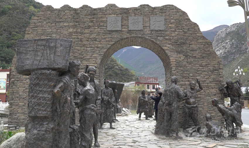 康定東關(guān)茶馬古道雕塑。