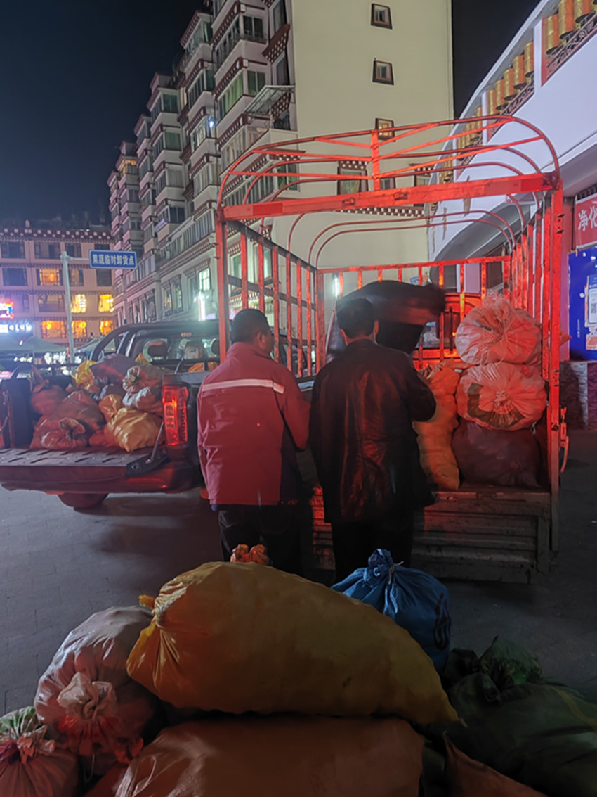 我們一起出門,只見(jiàn)寧卡趕著一群黑壓壓的牦牛從南邊的山路上歸來(lái),那陣勢(shì)陡然給這蒼莽的山林帶來(lái)了繁忙興旺的景象。我仿佛又回到了兒時(shí)的大雁子牧場(chǎng),手握著從來(lái)沒(méi)有打響過(guò)的牧鞭,組織一路青草紅花一遍遍輕唱:我騎上一匹白鹿,走進(jìn)你的夢(mèng)鄉(xiāng),月亮升上了東山頂上……扎巴和南吉奔跑去打開(kāi)西南兩面的圍欄門,牛群洪水樣涌入。南吉一家四口在牛群里奔忙,將小牛犢和母牛隔開(kāi)關(guān)圈,牛群陷入了混亂。半個(gè)小時(shí)后,數(shù)十頭小牛犢被成功趕入圈里,用欄桿上的毛繩拴成齊整一排,牛圈里傳出了踢踏節(jié)奏般的蹄音。