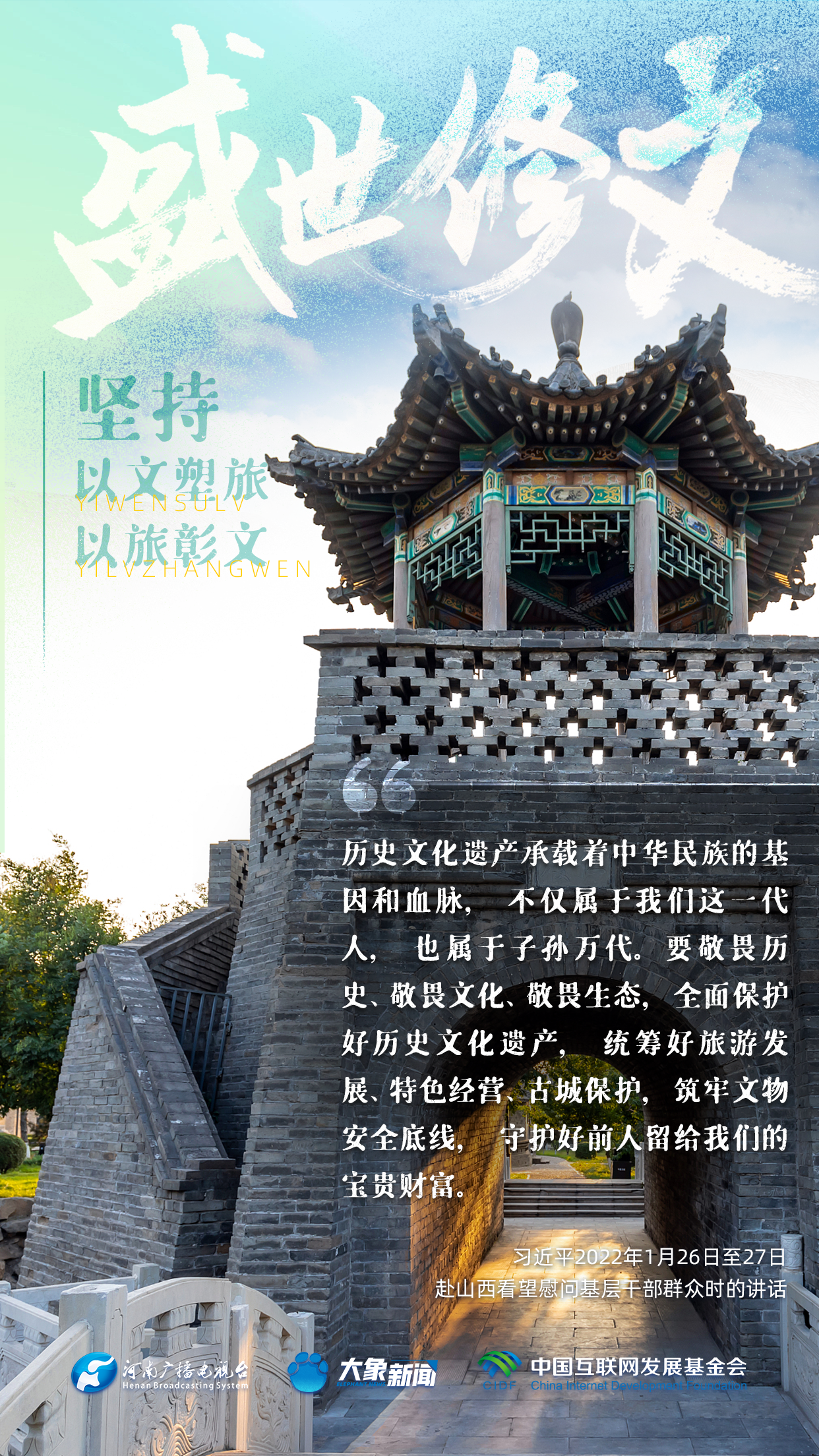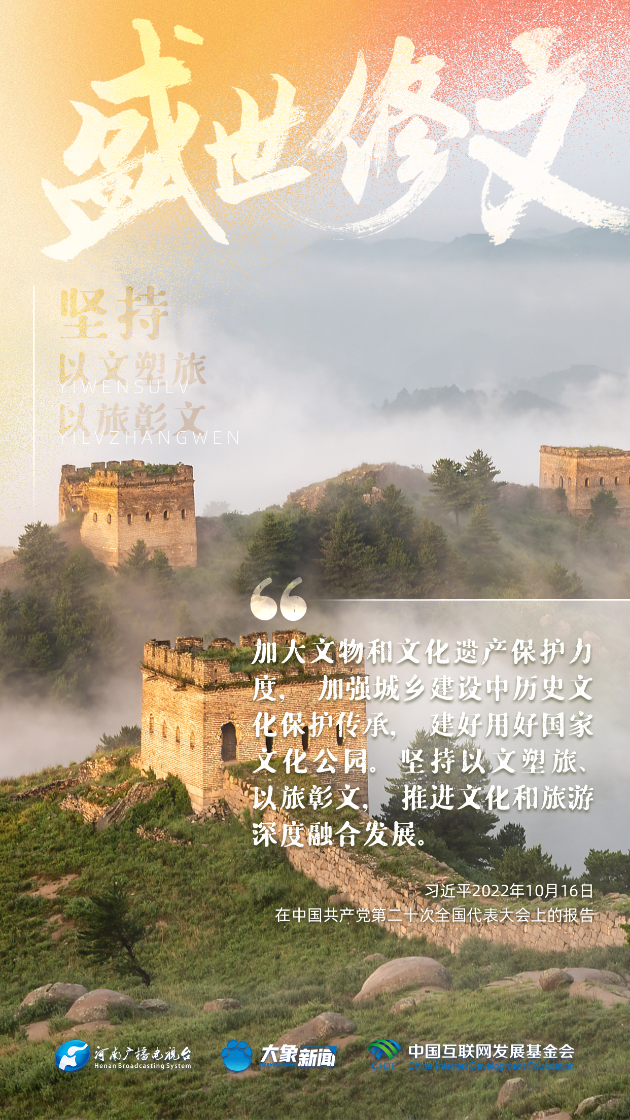 今天推出:習近平文化思想金句之《盛世修文|堅持以文塑旅、以旅彰文》