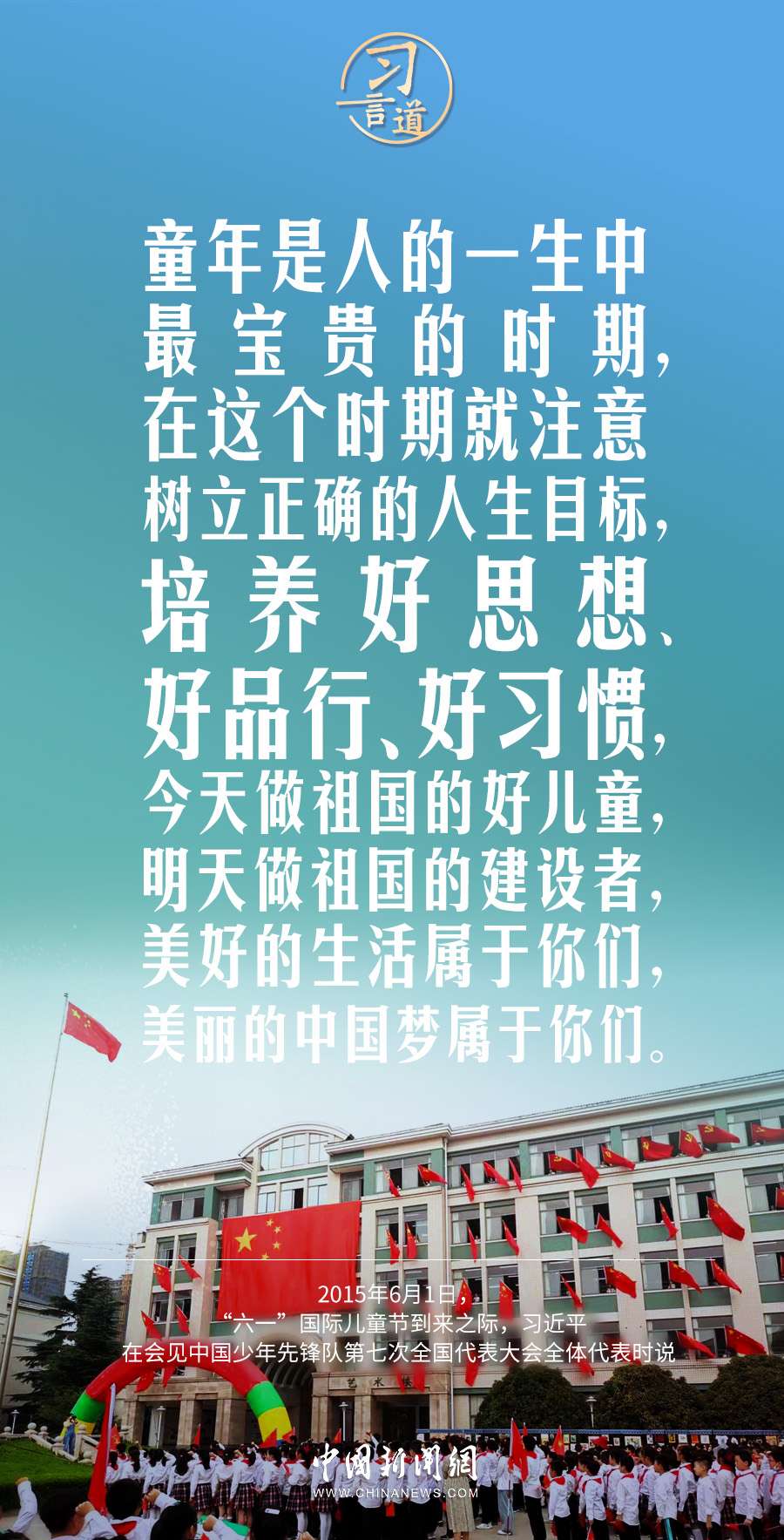 今天是“六一”國際兒童節(jié),習近平總書記曾在多個場合表達對少年兒童的關(guān)懷和期望,希望少年兒童從小立志向、有夢想。