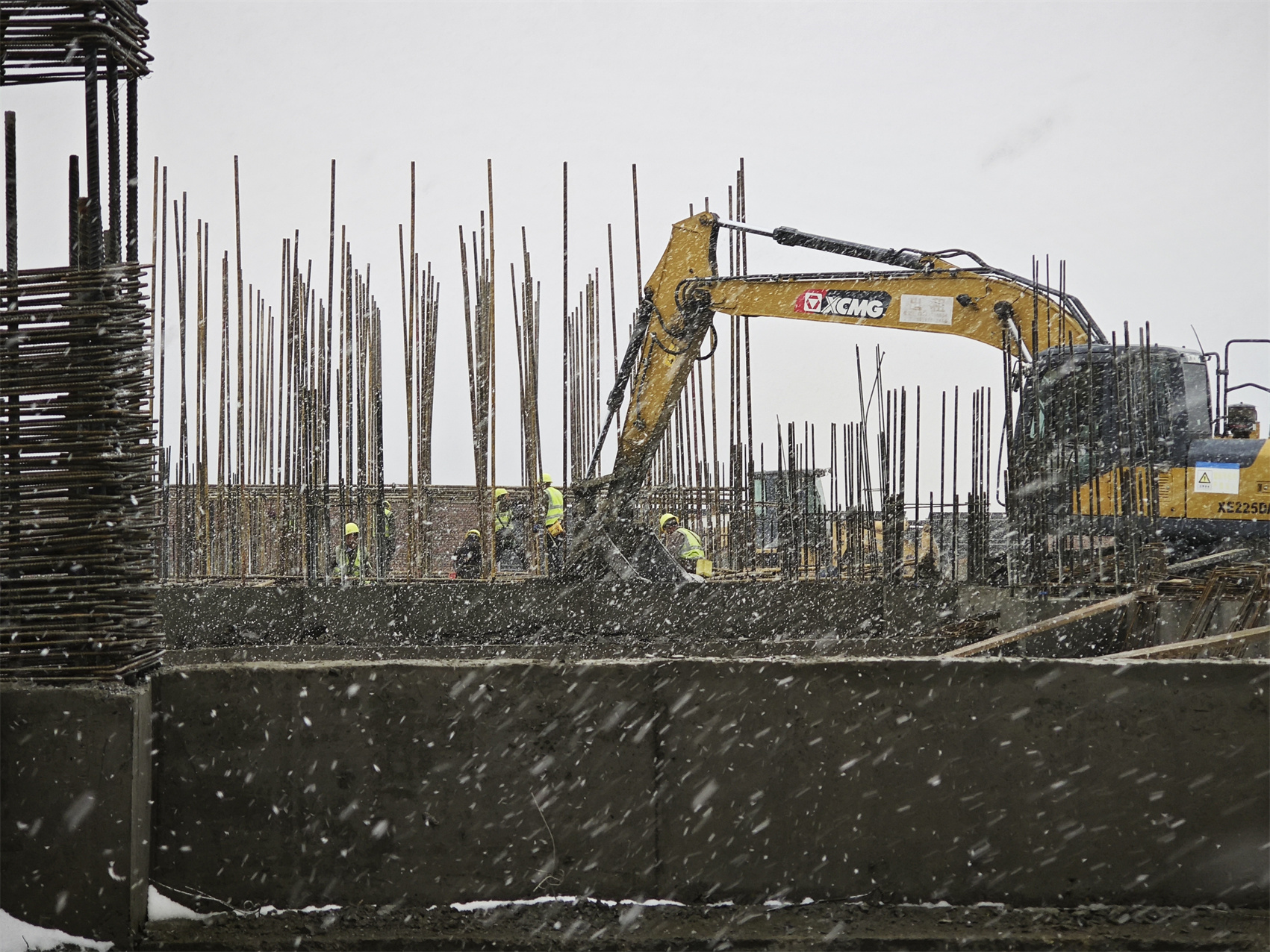 吳慶根和同事頂著風(fēng)雪,抱起一捆稻草、一卷泡沫走進(jìn)工地。這處工地是正在建設(shè)的電站升壓站輔助用房,頭一天剛剛完成0米以上的首梁澆筑,現(xiàn)在最要緊的就是混凝土的養(yǎng)護(hù)?!皽囟茸铌P(guān)鍵?!眳菓c根介紹,在混凝土凝固過程中,溫度過高或過低都有可能造成凝固質(zhì)量不好,“今天氣溫特別低,要趕緊采取保暖措施?!?/span>