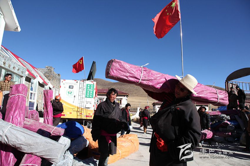 塔公鄉(xiāng)塔公村黨員服務(wù)隊在支書張東升的帶領(lǐng)下為災(zāi)民搭建帳篷。