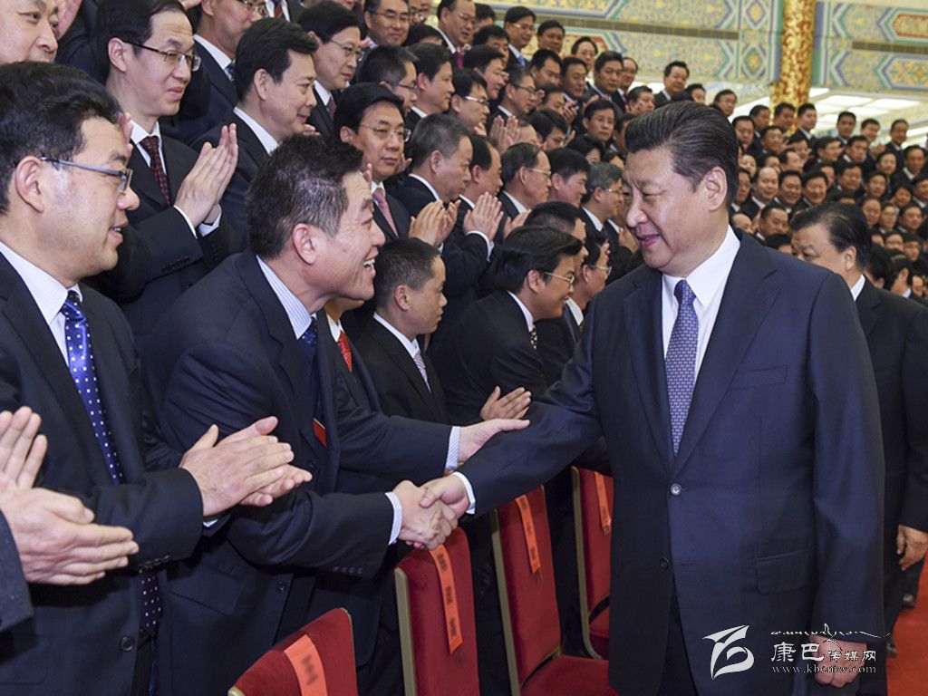下午3時,習(xí)近平等來到人民大會堂金色大廳,同代表們親切握手,并合影留念。