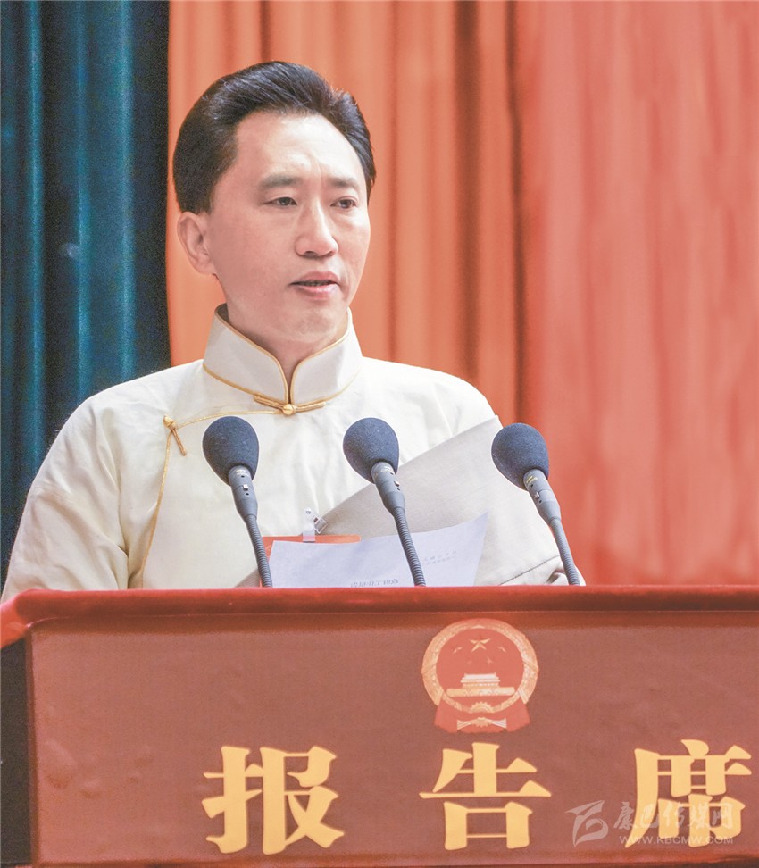 肖友才作政府工作報(bào)告。(本網(wǎng)記者 王明陽 張兵 攝)