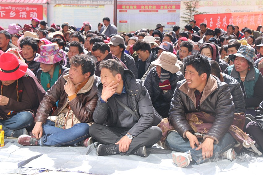 宣講中,宣講員們一會(huì)兒用藏語一會(huì)兒用漢語,一會(huì)兒講故事一會(huì)兒舉例子,一會(huì)兒逗趣說笑一會(huì)兒拍案而起,將省、州、縣的方針政策和國家法律、法規(guī)與當(dāng)?shù)厝罕姷膶?shí)際生活聯(lián)系起來,講得生動(dòng)形象;“現(xiàn)在政策這么好,自己不努力,以后人家都脫貧了你就只有看到?!薄扒谙词郑谙丛?,健康生活少不了?!薄耙粋€(gè)人長得再漂亮,住的房子不干凈,穿的衣服不干凈,還有一身壞習(xí)慣,也沒得哪個(gè)喜歡她嘛?!薄瓬\顯通俗又包含道理的句子更是層出不窮。現(xiàn)場時(shí)而笑聲朗朗、掌聲雷動(dòng),時(shí)而氣氛肅穆、鴉雀無聲。臺(tái)上,講的是激情四射、手舞足蹈;臺(tái)下,聽的是忘乎所以、目瞪口呆。長達(dá)3個(gè)小時(shí)的宣講,現(xiàn)場秩序井然。