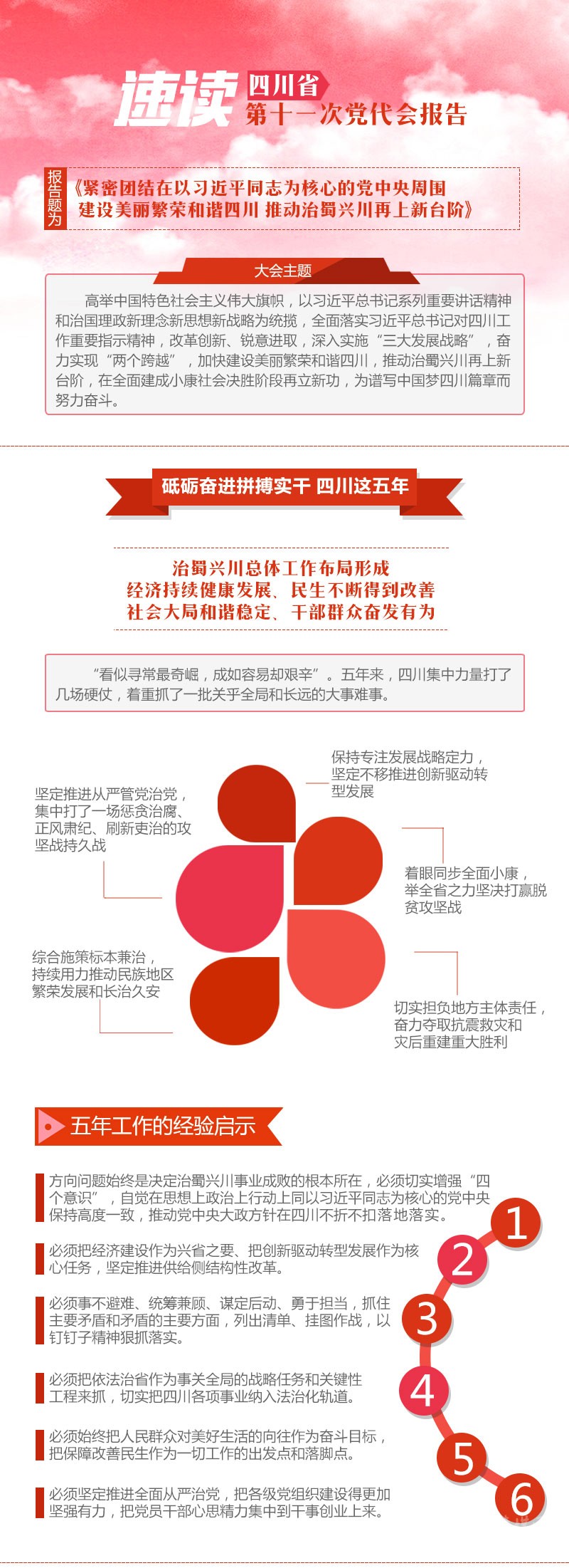 省第十一次黨代會(huì)5月24日上午開(kāi)幕,王東明代表十屆四川省委向大會(huì)作報(bào)告。四川這五年砥礪奮進(jìn)拼搏實(shí)干取得了怎樣的成績(jī)?收獲哪些經(jīng)驗(yàn)啟示?未來(lái)如何開(kāi)創(chuàng)發(fā)展新局面?