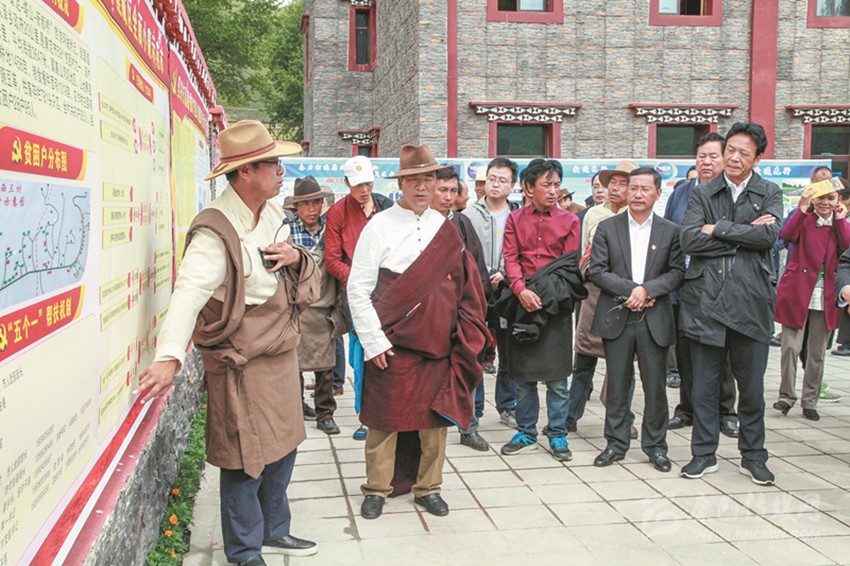 圖為與會(huì)人員在康定市瓦澤鄉(xiāng)魚(yú)子西三村參觀考察。