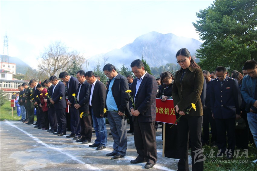 少年兒童和各界群眾代表也依次走到紀念碑前,獻上手中鮮花并瞻仰紀念碑。