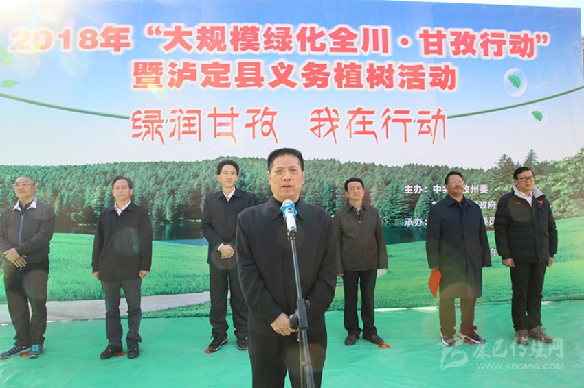 本網(wǎng)訊 (記者 楊杰 宋志勇 文/圖)3月22日上午,在瀘定縣瀘橋鎮(zhèn)五里溝村高速公路瀘定連接線公路旁,隨著州委書記劉成鳴宣布2018年“大規(guī)模綠化全川·甘孜行動”正式啟動,標(biāo)志著我州以“綠潤甘孜·我在行動”為主題的義務(wù)植樹活動正式啟動。