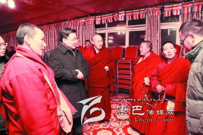 在結(jié)束對(duì)爐霍縣的調(diào)研后,胡昌升來到色達(dá)縣五明佛學(xué)院時(shí)已是晚上9點(diǎn)過了,他顧不上吃飯和休息立即看望和慰問受災(zāi)僧尼,與大家一一握手致意,詳細(xì)詢問受災(zāi)情況,并向受災(zāi)僧尼發(fā)放了棉衣、棉手套等過冬物資和慰問金。他指出,色達(dá)縣五明佛學(xué)院火災(zāi)發(fā)生后,省委、省政府,州委、州政府十分關(guān)心,省委書記王東明,省委副書記、省長(zhǎng)魏宏,省委副書記柯尊平,省委常委、政法委書記劉玉順,副省長(zhǎng)侍俊,省政協(xié)副主席、統(tǒng)戰(zhàn)部長(zhǎng)崔保華等領(lǐng)導(dǎo)多次詢問受災(zāi)情況,并對(duì)下一步工作作出要求。