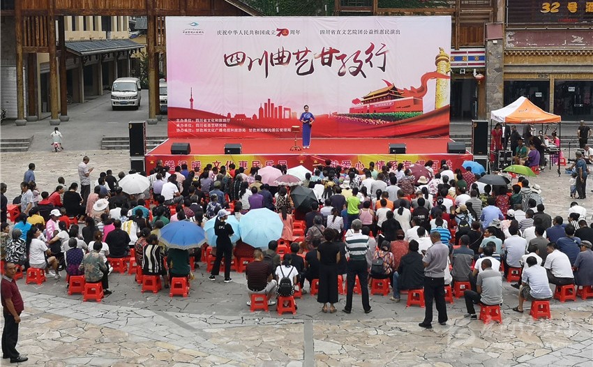 本網(wǎng)訊 8月28日,由四川省文化和旅游廳主辦,四川省曲藝研究院承辦,甘孜州文化廣播電視和旅游局協(xié)辦的“慶祝新中國(guó)成立70周年四川省直文藝院團(tuán)公益性惠民演出”走進(jìn)甘孜活動(dòng),在海螺溝景區(qū)管理局磨西鎮(zhèn)拉開(kāi)帷幕。