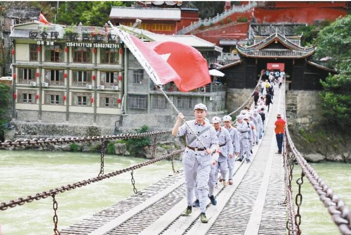 在全域旅游的時代背景下,飛奪瀘定橋作為甘孜州紅色文化資源的核心品牌,其號召力以及帶動當?shù)啬酥粮首沃萋糜伟l(fā)展的輻射作用,都在進一步凸顯。隨著雅康高速全線通車,越來越多的人從四面八方來到甘孜州,來到瀘定,走上瀘定橋,沿著革命先驅(qū)們的足跡,追尋那一段難忘的紅色記憶,弘揚和傳承長征精神。
