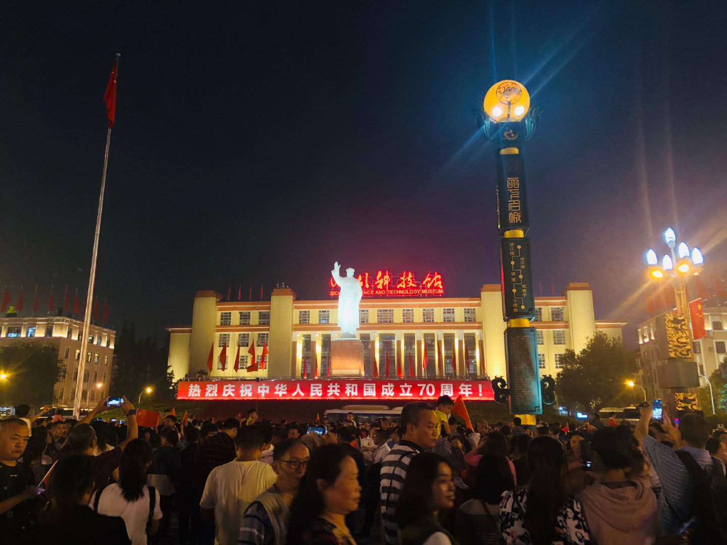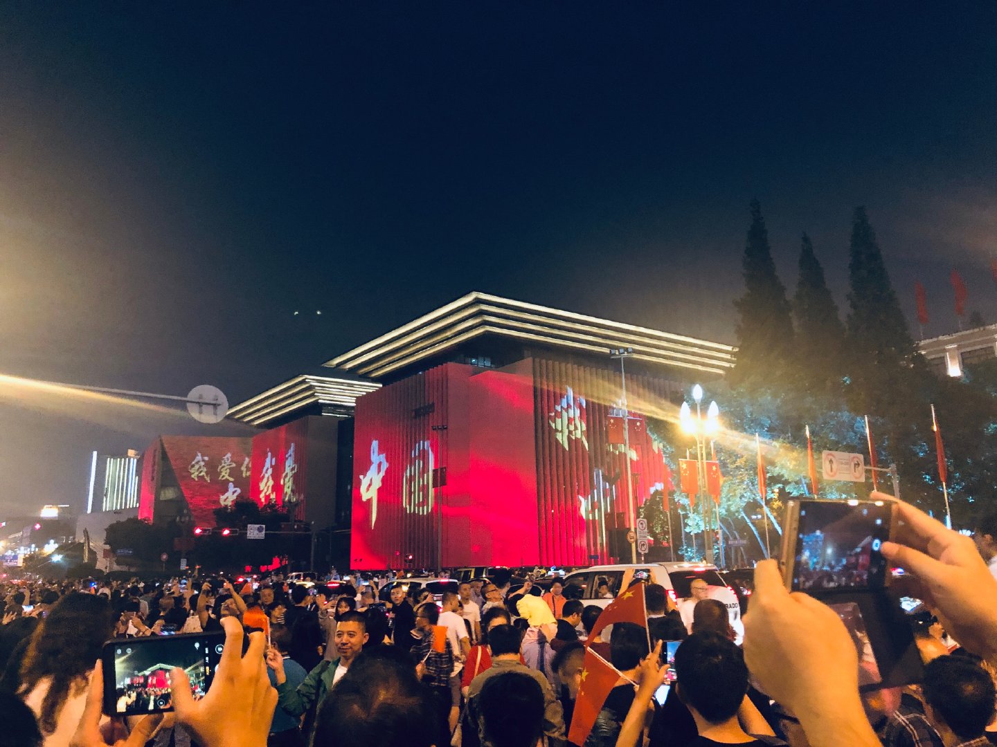 為慶祝新中國成立70周年,成都市開啟超級夜景模式。四川大劇院、四川美術館、四川省圖書館、成都市博物院等建筑被大型投影包裹,美輪美奐!群眾紛紛拍照留念,還有群眾激動地在現(xiàn)場合唱《我和我的祖國》,祝福祖國母親生日快樂。