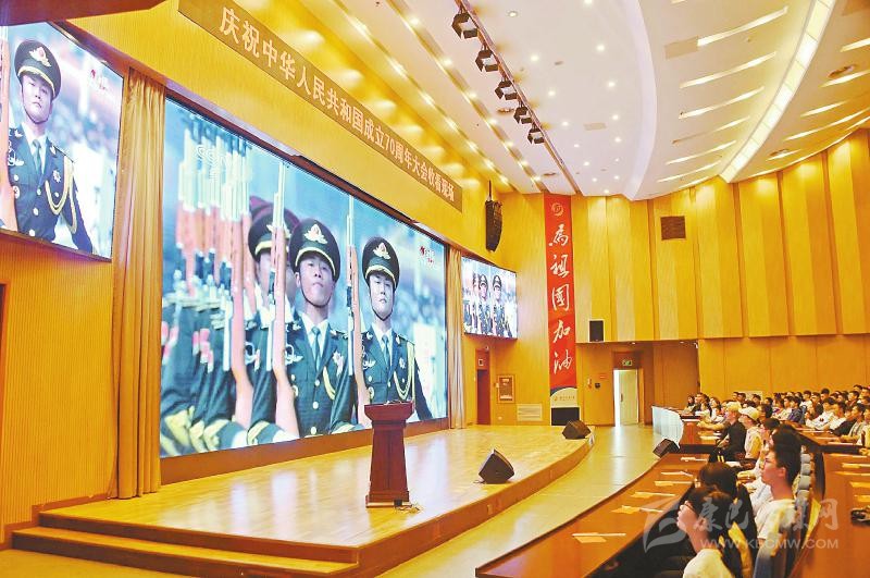 西南石油大學(xué)師生收看國(guó)慶慶典直播。 曹正攝