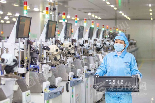 遂寧市經(jīng)開區(qū)藍彩電子智能信息化車間,工人正在生產(chǎn)線開足馬力加緊生產(chǎn)。