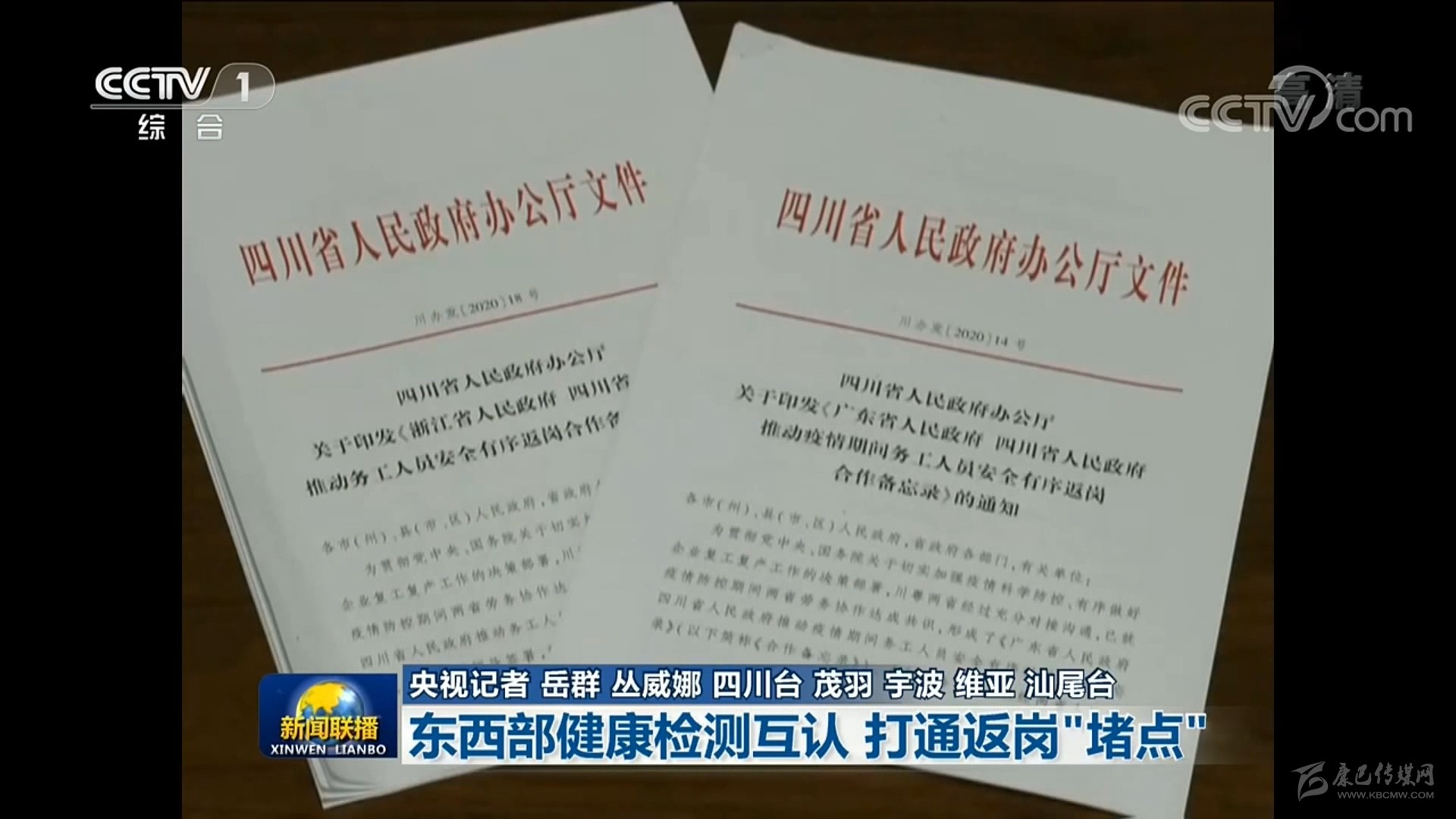 為了讓外出務(wù)工人員順利走出家門返崗,四川務(wù)實(shí)推出“健康碼”,又主動(dòng)和7省市簽署《合作備忘錄》,成為第一個(gè)和其他省建立起健康檢測互認(rèn)工作機(jī)制的省份。今天的《新聞聯(lián)播》單條關(guān)注了這一全國創(chuàng)新之舉,央視聯(lián)手四川廣播電視臺探尋機(jī)制背后的邏輯。來看川臺記者的一線調(diào)研采訪。