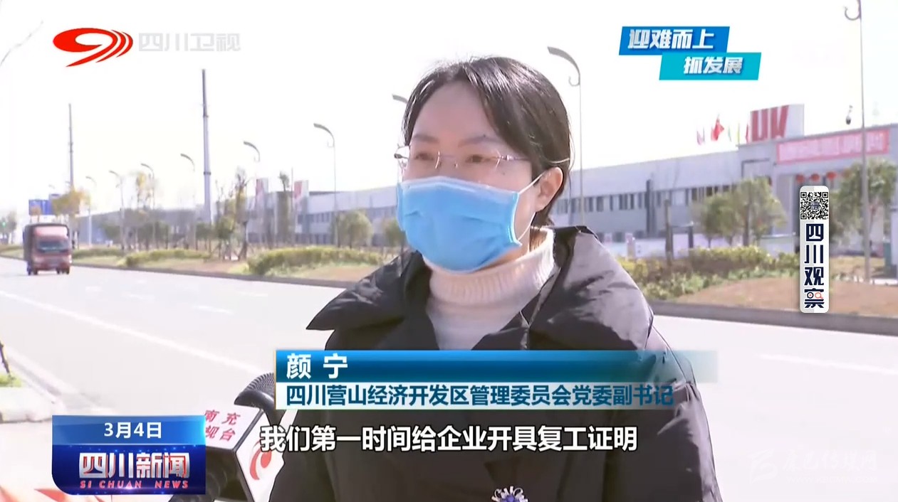 四川營(yíng)山經(jīng)濟(jì)開(kāi)發(fā)區(qū)管理委員會(huì)黨委副書(shū)記 顏寧:我們第一時(shí)間給企業(yè)開(kāi)具復(fù)工證明,并協(xié)調(diào)發(fā)改(部門(mén)),開(kāi)具這個(gè)快速通行證,協(xié)調(diào)那個(gè)社區(qū),給他們開(kāi)具那個(gè)健康證明,確保企業(yè)的產(chǎn)品能夠第一時(shí)間運(yùn)出去。