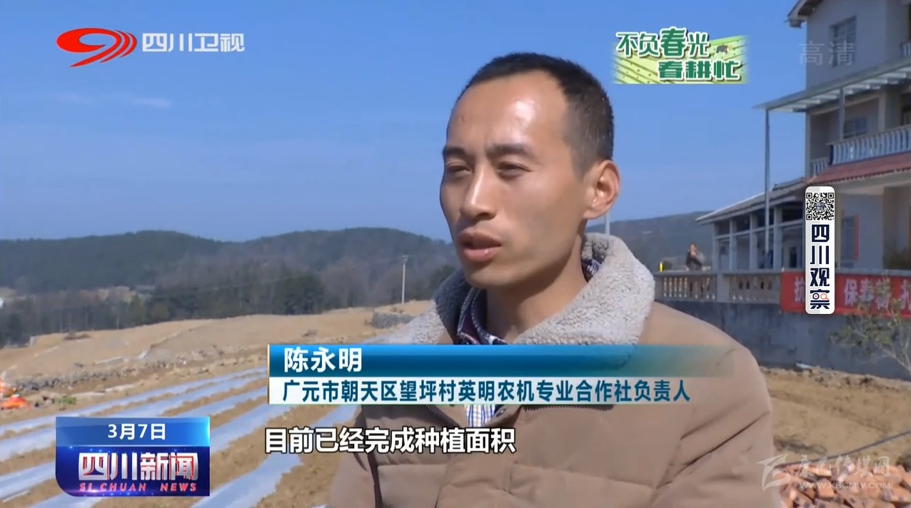 廣元市朝天區(qū)望坪村英明農(nóng)機(jī)專(zhuān)業(yè)合作社負(fù)責(zé)人陳永明:目前已經(jīng)完成種植面積有三四十畝,大量投入機(jī)器播種,300多畝地五六天就能完成。