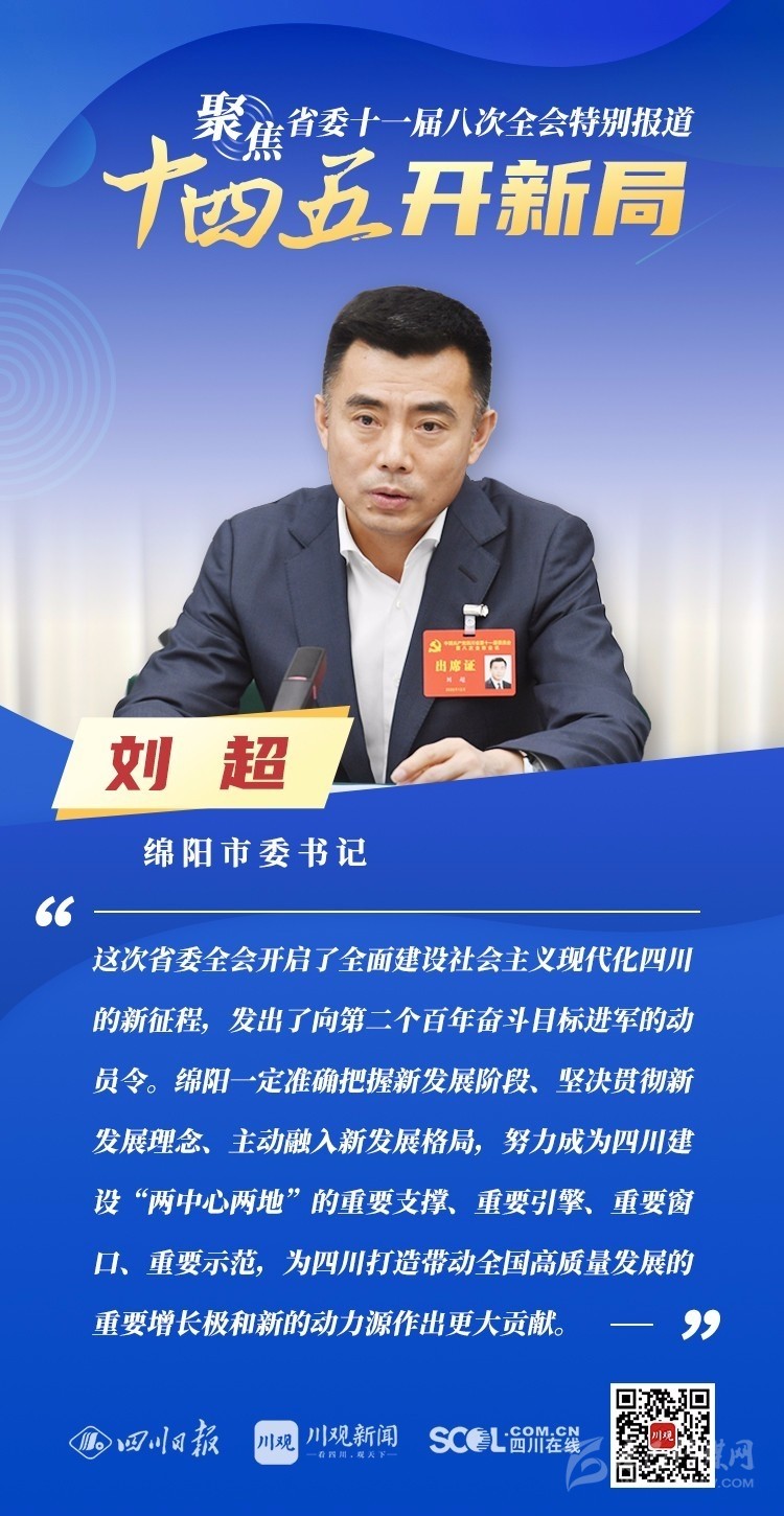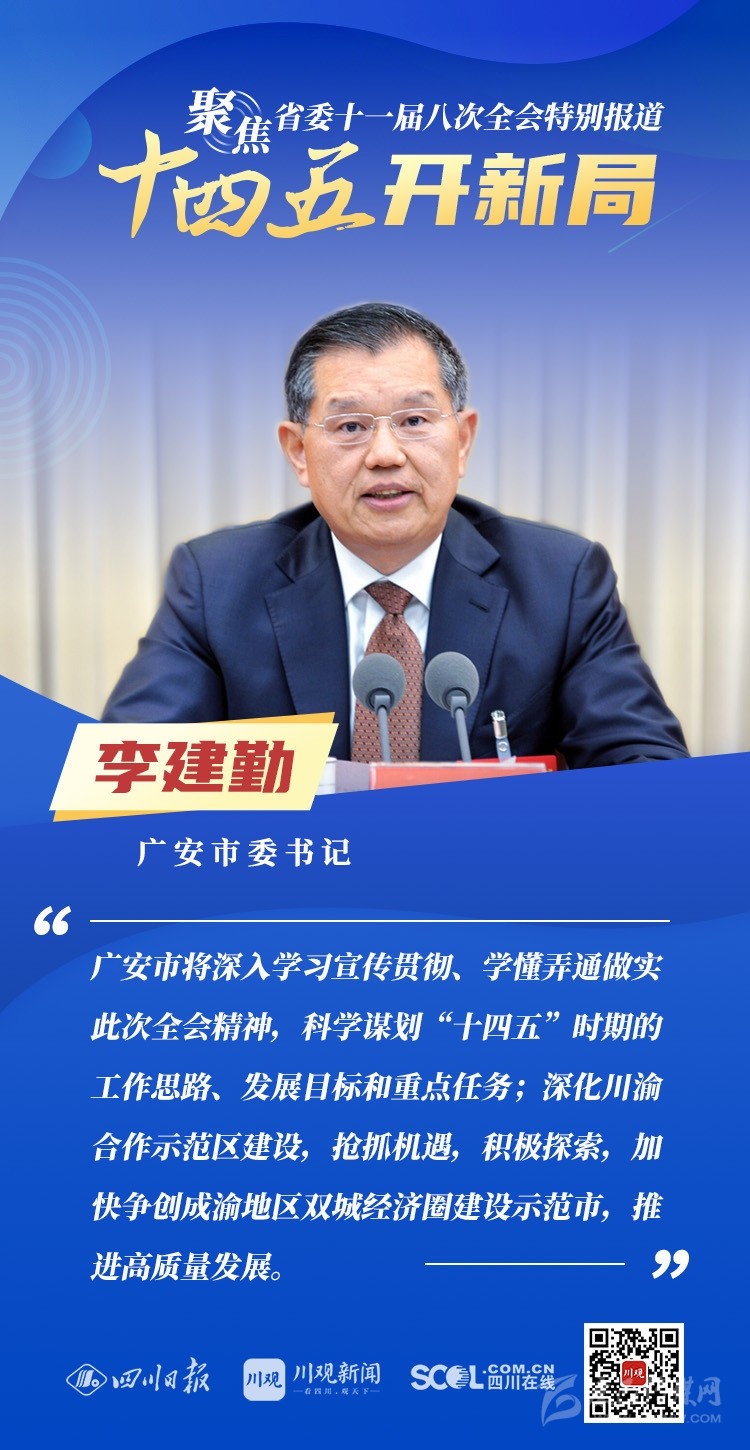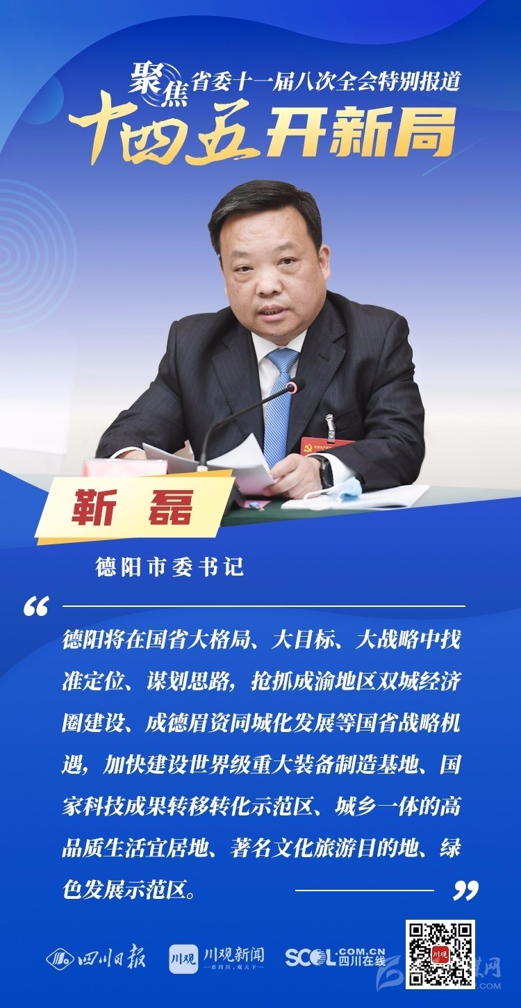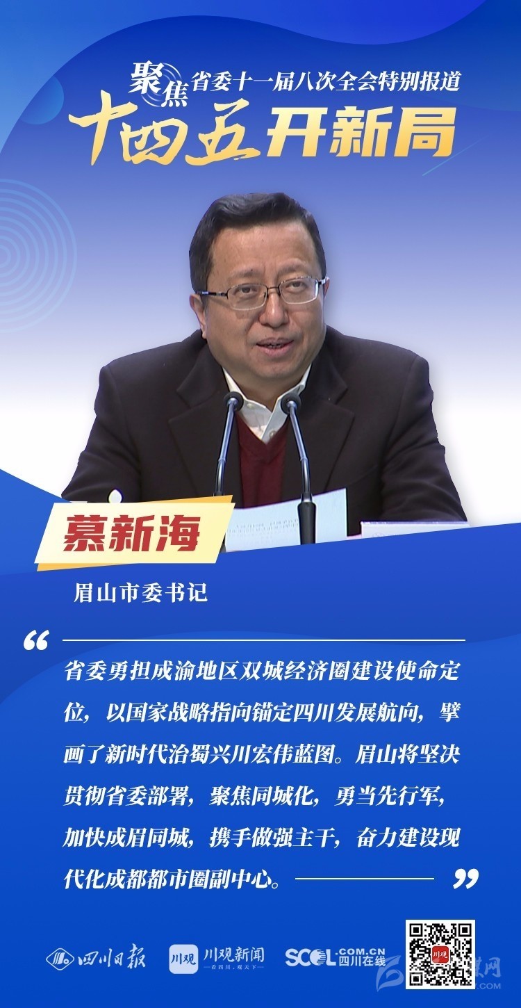 12月3日,中共四川省委十一屆八次全會在成都開幕,全會將深入學(xué)習(xí)貫徹黨的十九屆五中全會精神,審議《中共四川省委關(guān)于制定四川省國民經(jīng)濟和社會發(fā)展第十四個五年規(guī)劃和二〇三五年遠景目標的建議(討論稿)》,為未來5年乃至更長時期四川發(fā)展謀劃新藍圖 。