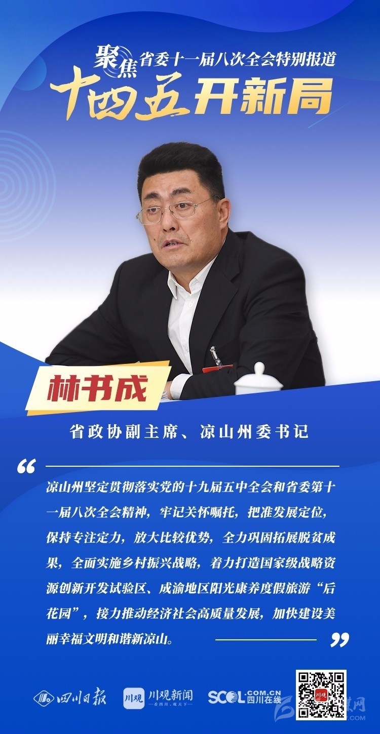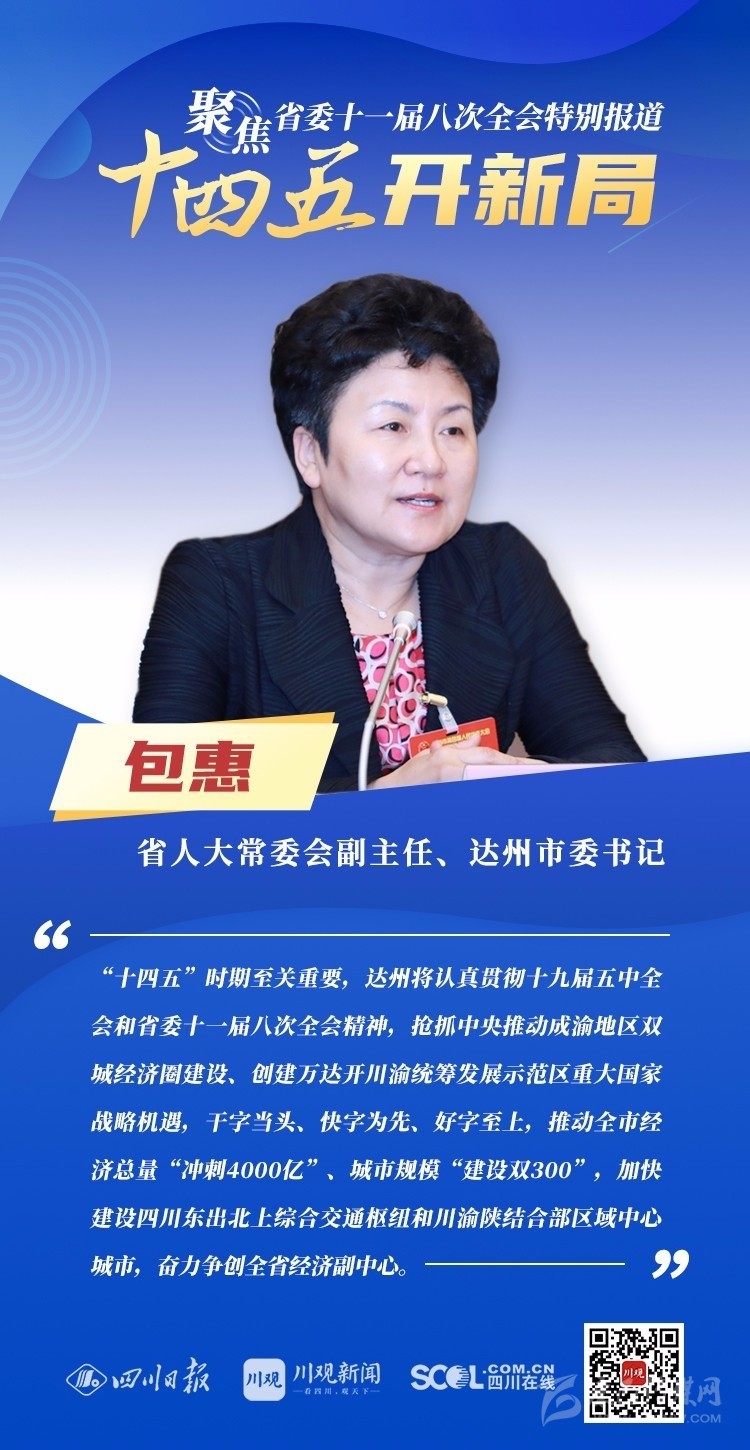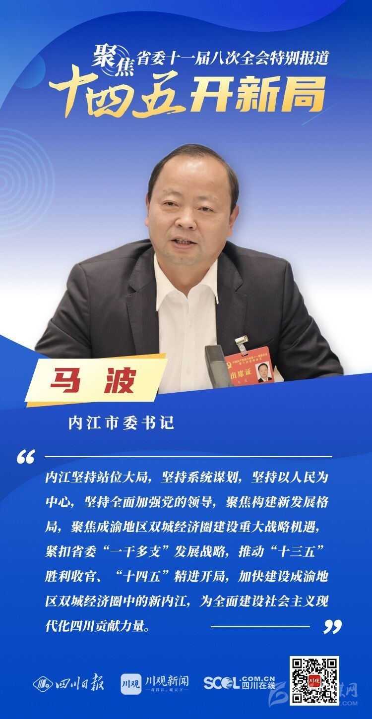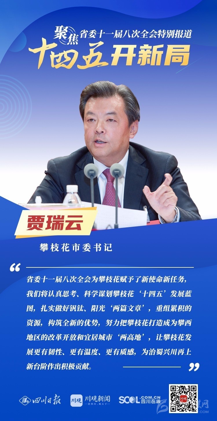 12月3日,中共四川省委十一屆八次全會在成都開幕,全會將深入學(xué)習(xí)貫徹黨的十九屆五中全會精神,審議《中共四川省委關(guān)于制定四川省國民經(jīng)濟和社會發(fā)展第十四個五年規(guī)劃和二〇三五年遠景目標的建議(討論稿)》,為未來5年乃至更長時期四川發(fā)展謀劃新藍圖 。