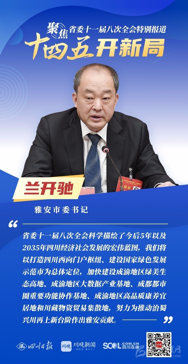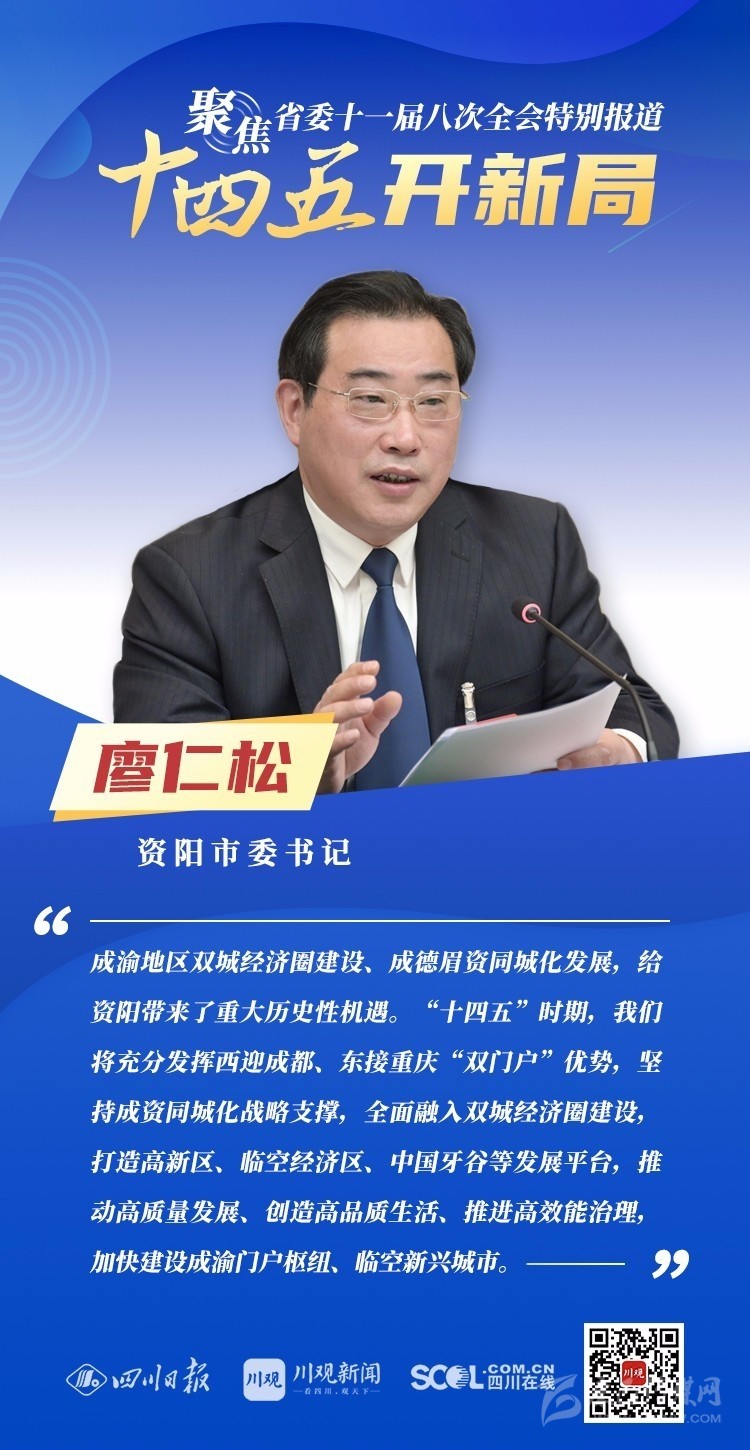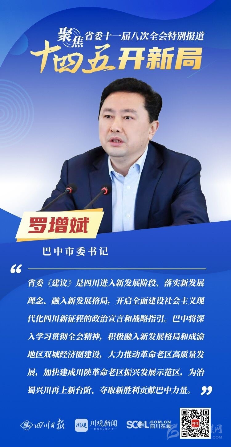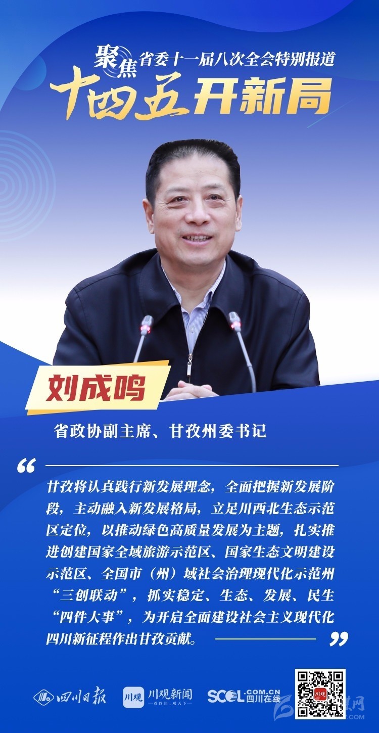 12月3日,中共四川省委十一屆八次全會在成都開幕,全會將深入學(xué)習(xí)貫徹黨的十九屆五中全會精神,審議《中共四川省委關(guān)于制定四川省國民經(jīng)濟和社會發(fā)展第十四個五年規(guī)劃和二〇三五年遠景目標的建議(討論稿)》,為未來5年乃至更長時期四川發(fā)展謀劃新藍圖 。