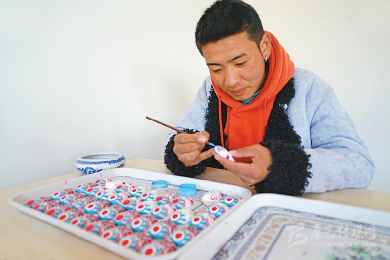 本著自主自愿的原則,教學(xué)班結(jié)束后,65名藏族青年主動(dòng)加入扶貧彩繪實(shí)訓(xùn)班,成為項(xiàng)目的第一批學(xué)員?!皩?shí)訓(xùn)期間不需要交任何費(fèi)用,還包吃住。我對畫京劇臉譜很有興趣,我們第一個(gè)月學(xué)習(xí)繪畫基本功,第二個(gè)月開始,根據(jù)成品質(zhì)量,就可以計(jì)件得酬勞,學(xué)習(xí)期間我每月能掙500多元?!壁雠f。