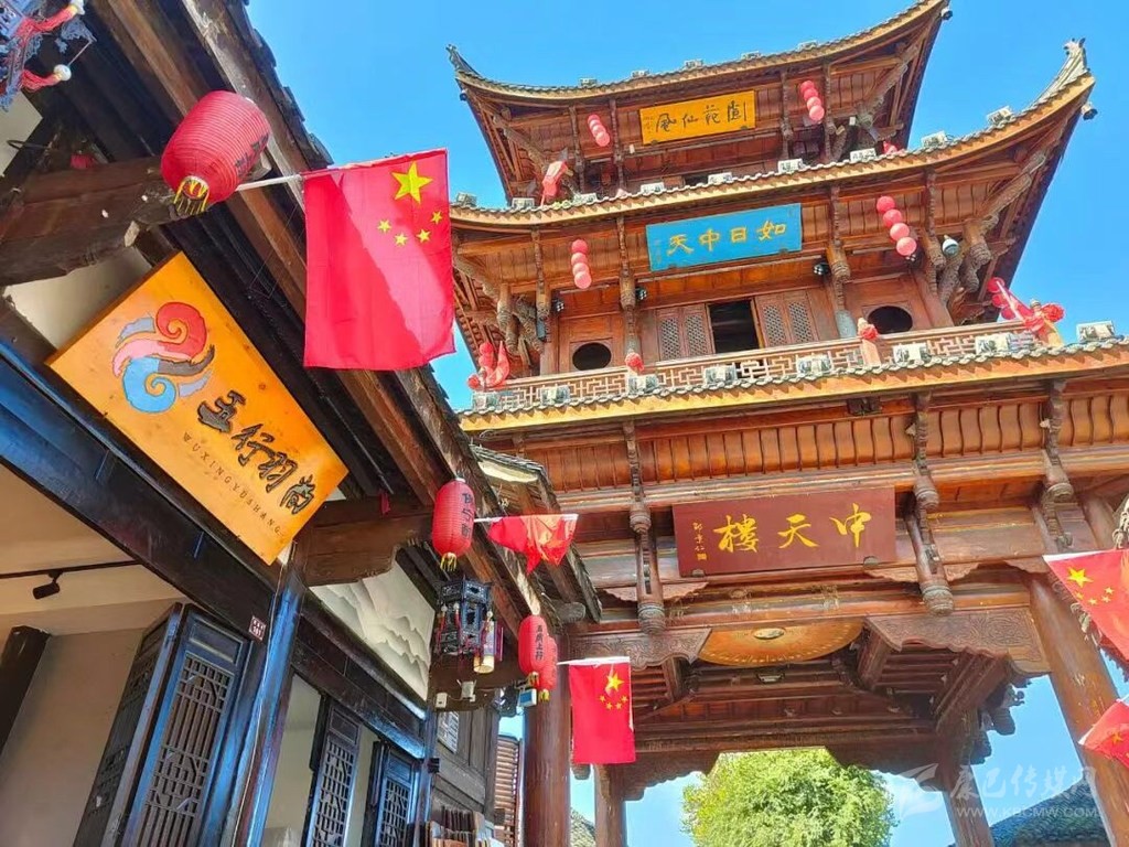 在南充古城閬中,以中天樓為核心鋪開(kāi)的四條街道,全部被五星紅旗裝點(diǎn)開(kāi)來(lái),甚至部分街段上空鋪上了“紅旗海”。新城的主干道,也掛上了一面面五星紅旗,站在街頭放眼望去,鮮艷的五星紅旗成為一道最靚麗的風(fēng)景線。
