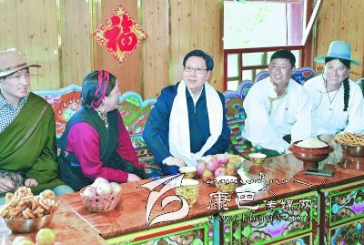 5月21日,省委書記王東明到道孚縣八美鎮(zhèn)雀爾村調(diào)研旅游新村建設(shè)情況。在藏族村民仁真翁姆家中,王東明親切地與她拉起家常,仔細(xì)詢問就業(yè)、收入等情況。 川報(bào)記者 毛漫丁 攝