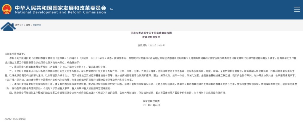 國家發(fā)展改革委關(guān)于同意成都都市圈