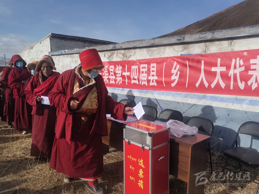 2021年州人大常委會(huì)指導(dǎo)各縣(市)圓滿完成了縣鄉(xiāng)人大換屆選舉,圖為寺廟僧侶正在投票。