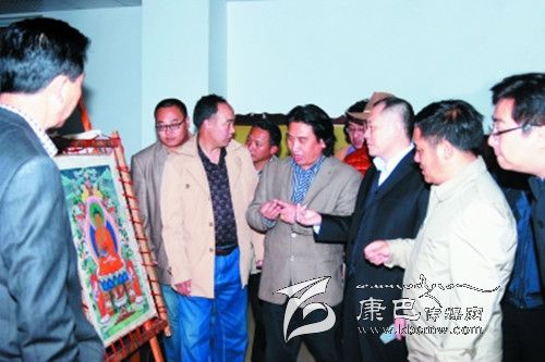 本網(wǎng)訊(高志安 鄭勇 文/圖) 6月21日,國家文化部非遺司司長馬文輝在省文化廳副廳長澤波陪同下,到四川省藏文學(xué)校調(diào)研藏族唐卡畫繪藝術(shù)嘎瑪嘎孜畫派教學(xué)情況。嘎瑪嘎孜畫派國家級傳承人、省藏校高級講師顔登澤仁就嘎瑪嘎孜畫派的歷史、傳承情況以及現(xiàn)狀向馬文輝一行作了匯報。省藏校負責(zé)人匯報了學(xué)校唐卡藝術(shù)教學(xué)情況。馬文輝一行一邊聽取匯報,一邊觀看師生作品和學(xué)生現(xiàn)場作畫,并向師生了解情況,聽完匯報、看完學(xué)生繪畫后,馬文輝對省藏校的唐卡藝術(shù)教育工作給予了高度評價,并要求學(xué)校繼續(xù)做好弘揚民族優(yōu)秀傳統(tǒng)文化工作,為社會主義文化大發(fā)展作出新貢獻。