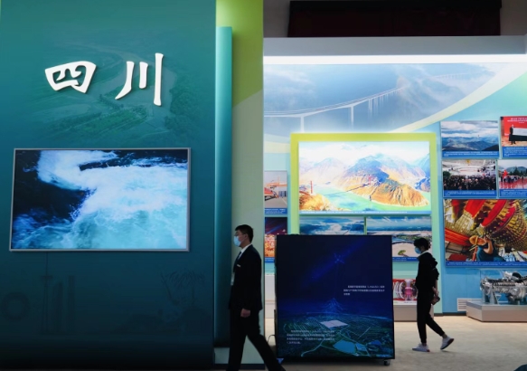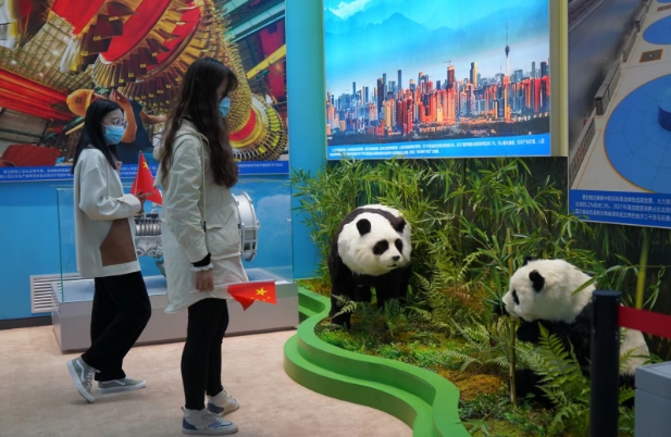 國(guó)慶期間,觀(guān)眾在“奮進(jìn)新時(shí)代”主題成就展四川展區(qū)參觀(guān)。