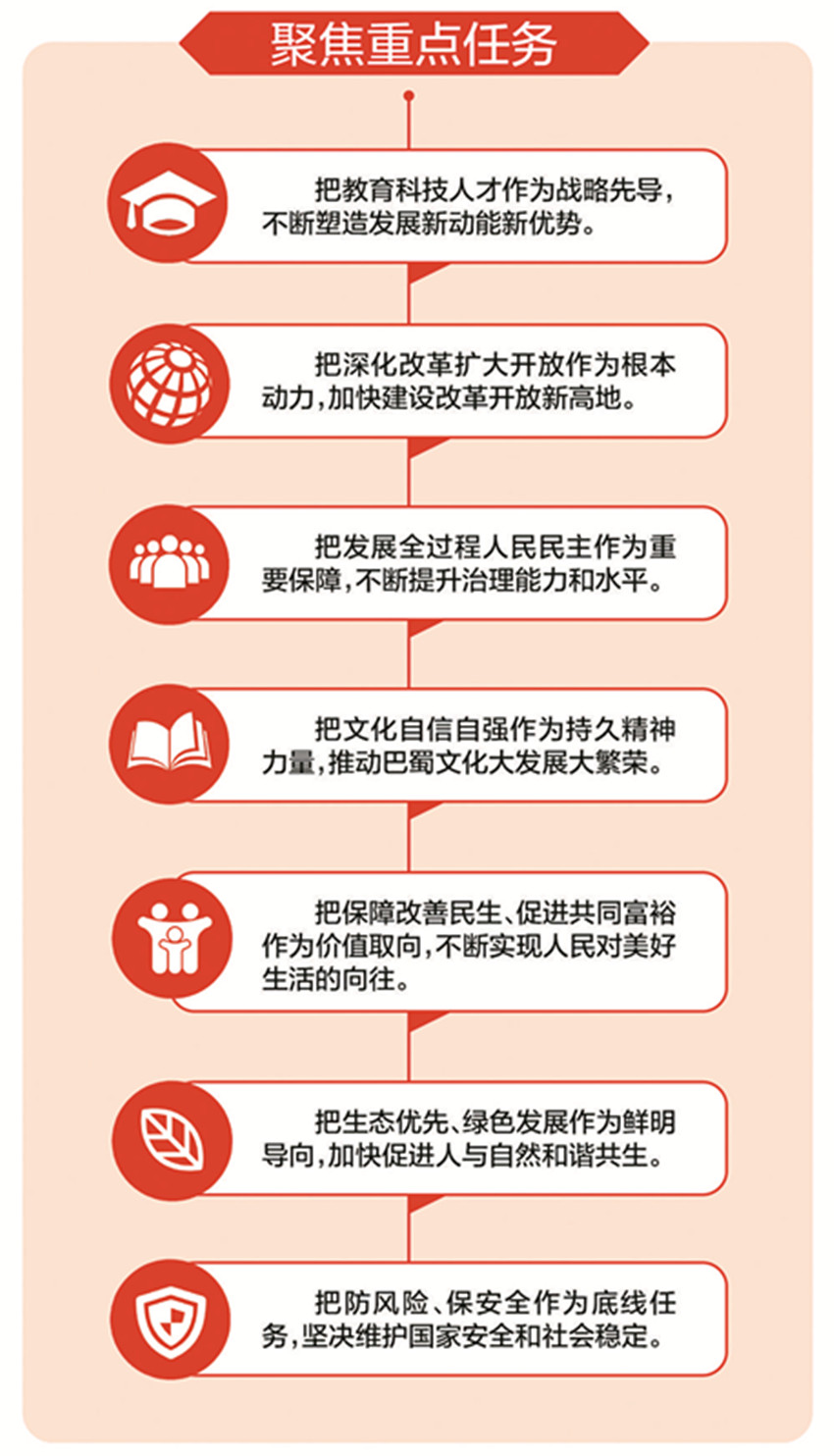 “省委全會緊扣國家所需和四川所能,進一步對建設現代化經濟強省、強化教育科技和人才支撐、加快民生社會事業(yè)發(fā)展、提升治理體系和治理能力現代化水平等作出系統(tǒng)部署,明確了四川現代化建設的重點任務?!笔n案館館長祝云說,這些部署有利于在更高戰(zhàn)略維度、更廣空間尺度上塑造我省發(fā)展新優(yōu)勢。