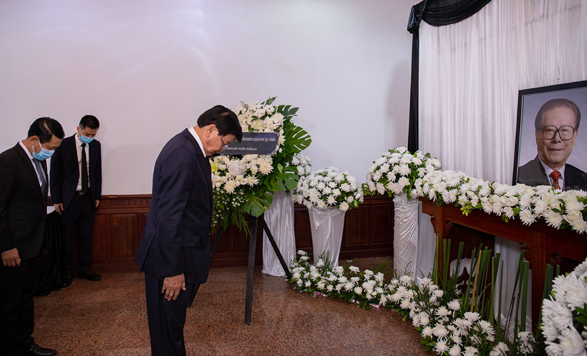 12月5日,老撾總理潘坎在中國(guó)駐老撾大使館吊唁江澤民同志。 凱喬 攝(新華社 發(fā))