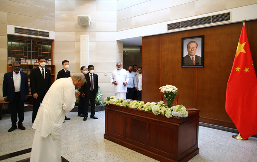 十二月二日,斯里蘭卡總統(tǒng)維克拉馬辛哈在中國(guó)駐斯里蘭卡大使館吊唁江澤民同志。 薩米拉 攝(新華社 發(fā))