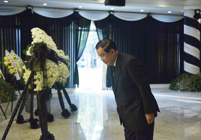 12月5日,柬埔寨首相洪森在中國(guó)駐柬埔寨大使館吊唁江澤民同志。 萬坡 攝(新華社 發(fā))