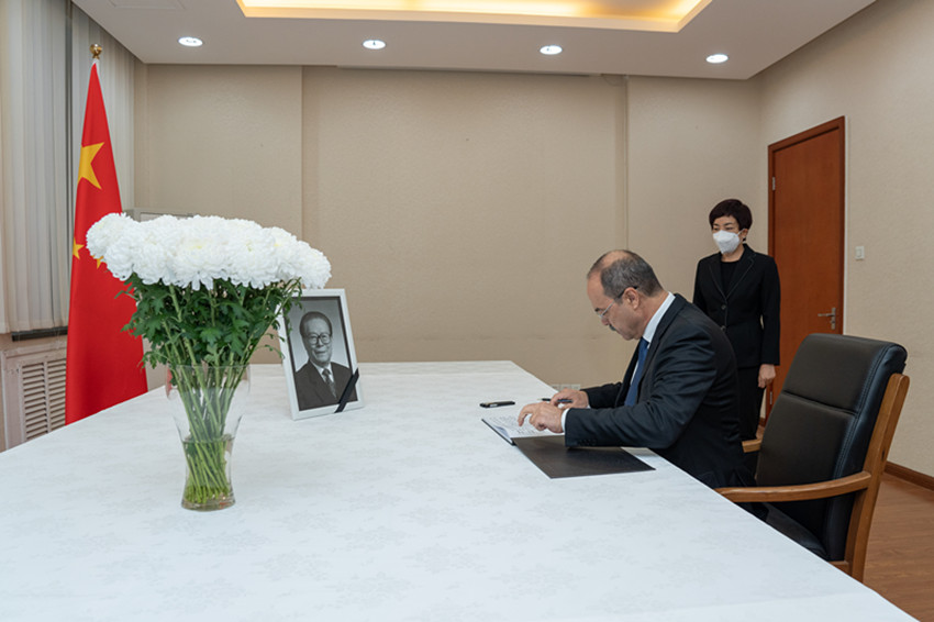 12月5日,烏茲別克斯坦總理阿里波夫在中國(guó)駐烏茲別克斯坦大使館吊唁江澤民同志。 高山 攝(新華社 發(fā))