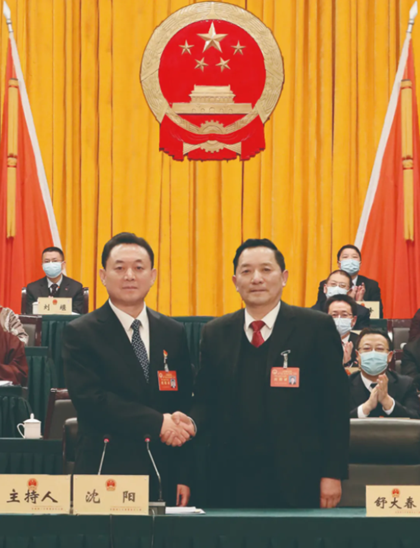 州十三屆人大常委會(huì)第四次會(huì)議上,舒大春向被任命人員頒發(fā)任命書(shū)。