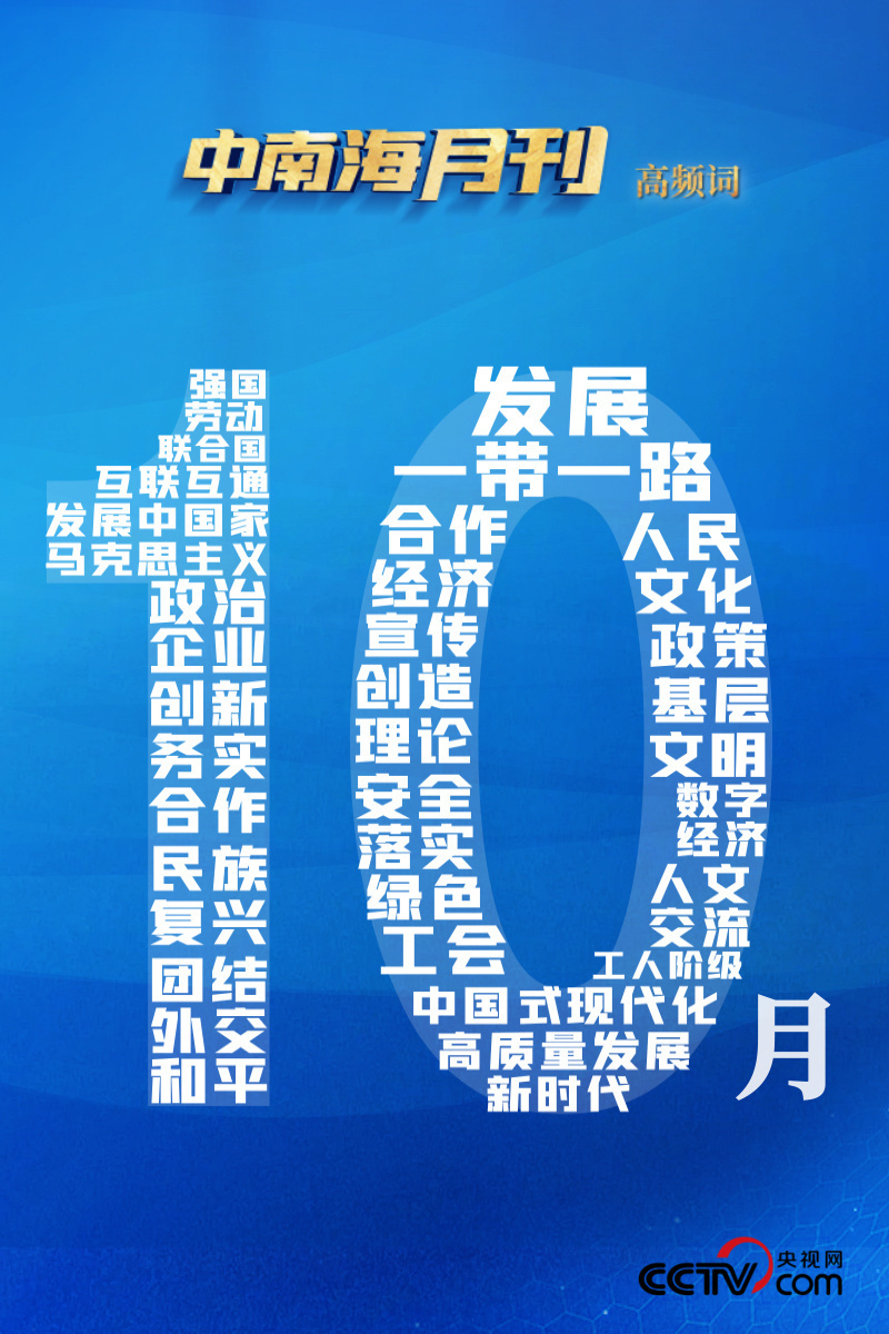 央視網《中南海月刊》運用智能大數據,與您一起回顧金秋10月的中華大地,在習近平新時代中國特色社會主義思想的引領下,奮進前行的腳步。