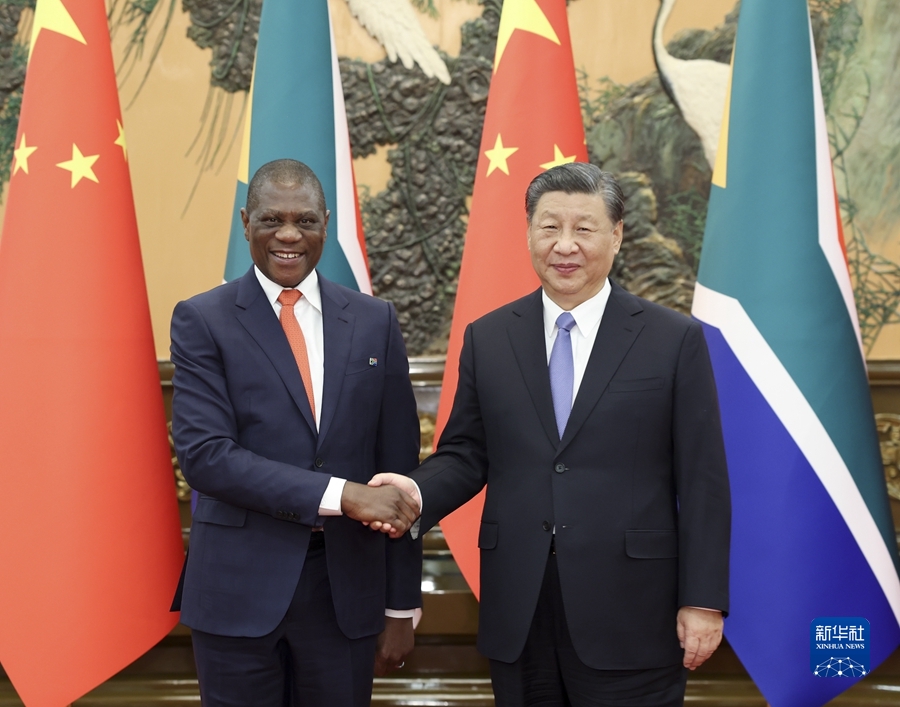 習近平強調(diào),中方支持南非探索符合本國國情的現(xiàn)代化道路,愿同南非進一步夯實政治互信基礎,提升互利合作水平。中方愿同南非等非洲國家一道,落實中國支持非洲工業(yè)化、農(nóng)業(yè)現(xiàn)代化、人才培養(yǎng)三項舉措以及高質(zhì)量共建“一帶一路”的八項行動,打造一批高標準、惠民生、可持續(xù)的合作項目,提升中非合作的戰(zhàn)略性和可持續(xù)性,推動構建高水平中非命運共同體。雙方應繼續(xù)密切在金磚國家機制內(nèi)合作,加強發(fā)展中國家團結合作,推動全球治理體系朝著有利于發(fā)展中國家的方向發(fā)展。