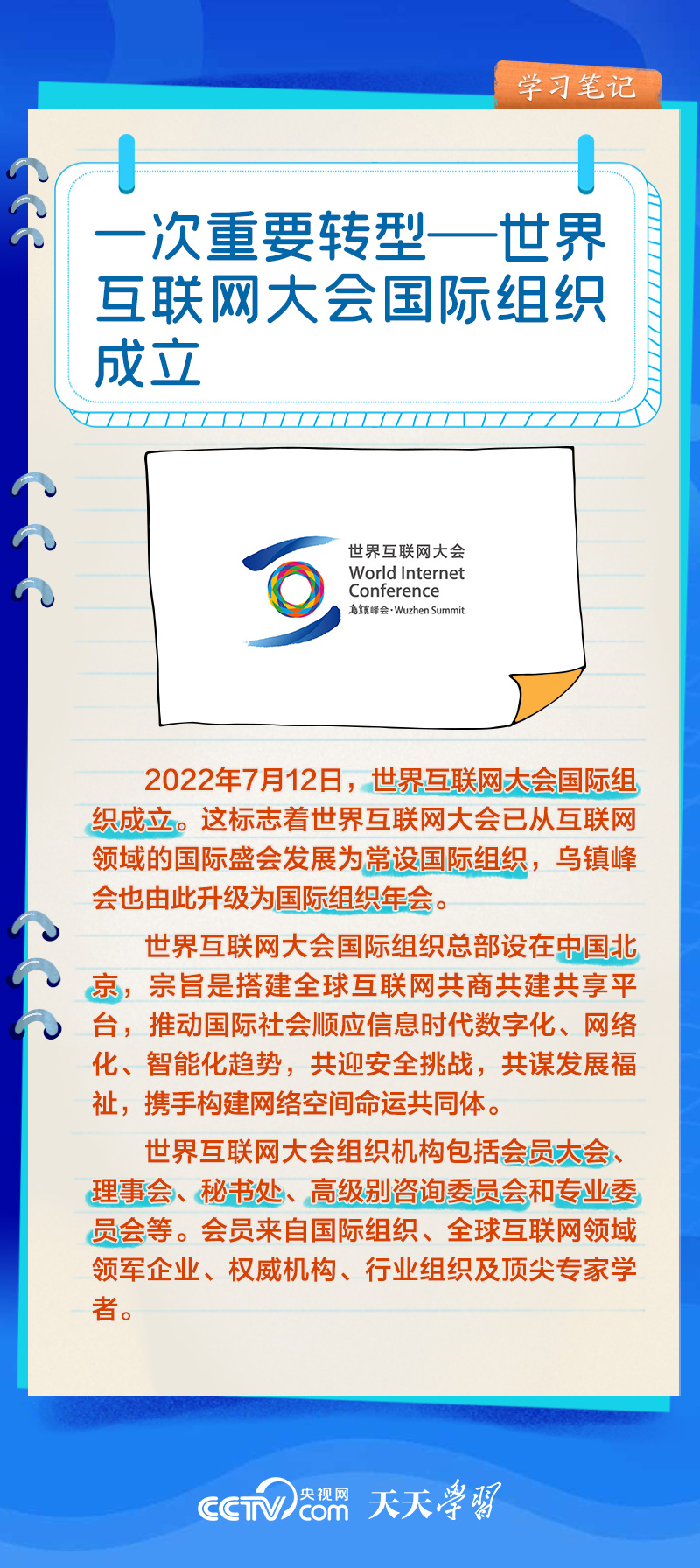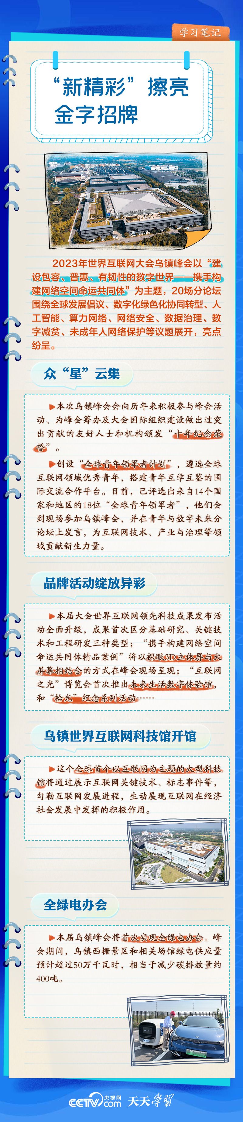 前九屆世界互聯(lián)網(wǎng)大會,習近平主席或親臨現(xiàn)場發(fā)表主旨演講,或視頻致辭,或向大會發(fā)來賀信,以不同形式關(guān)心大會舉辦。央視網(wǎng)《天天學習》欄目推出學習筆記,與您一起了解世界互聯(lián)網(wǎng)大會的十年“網(wǎng)”事。