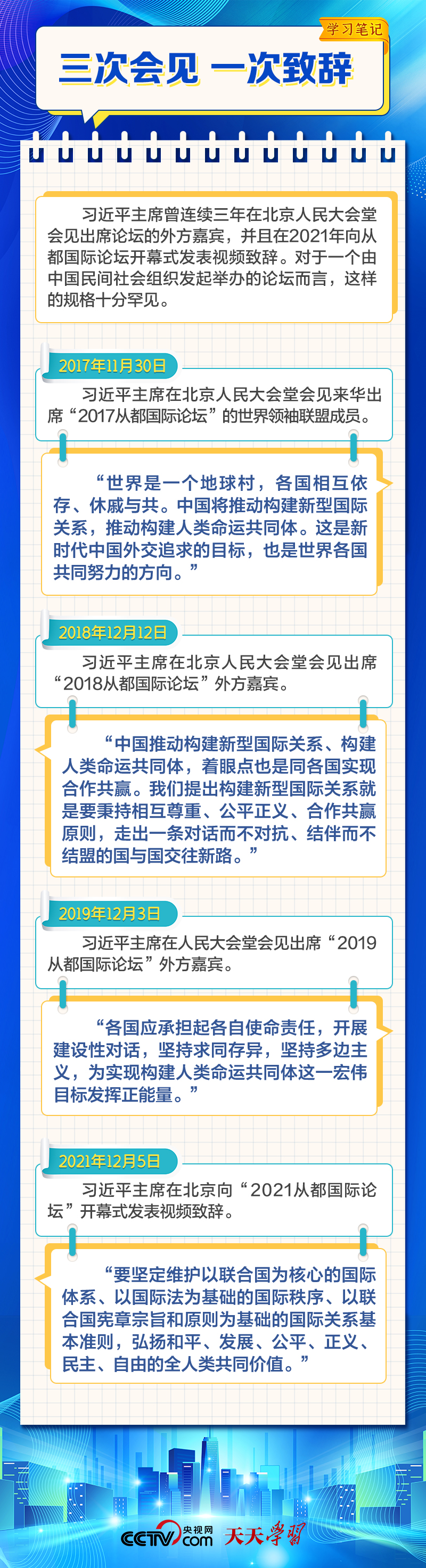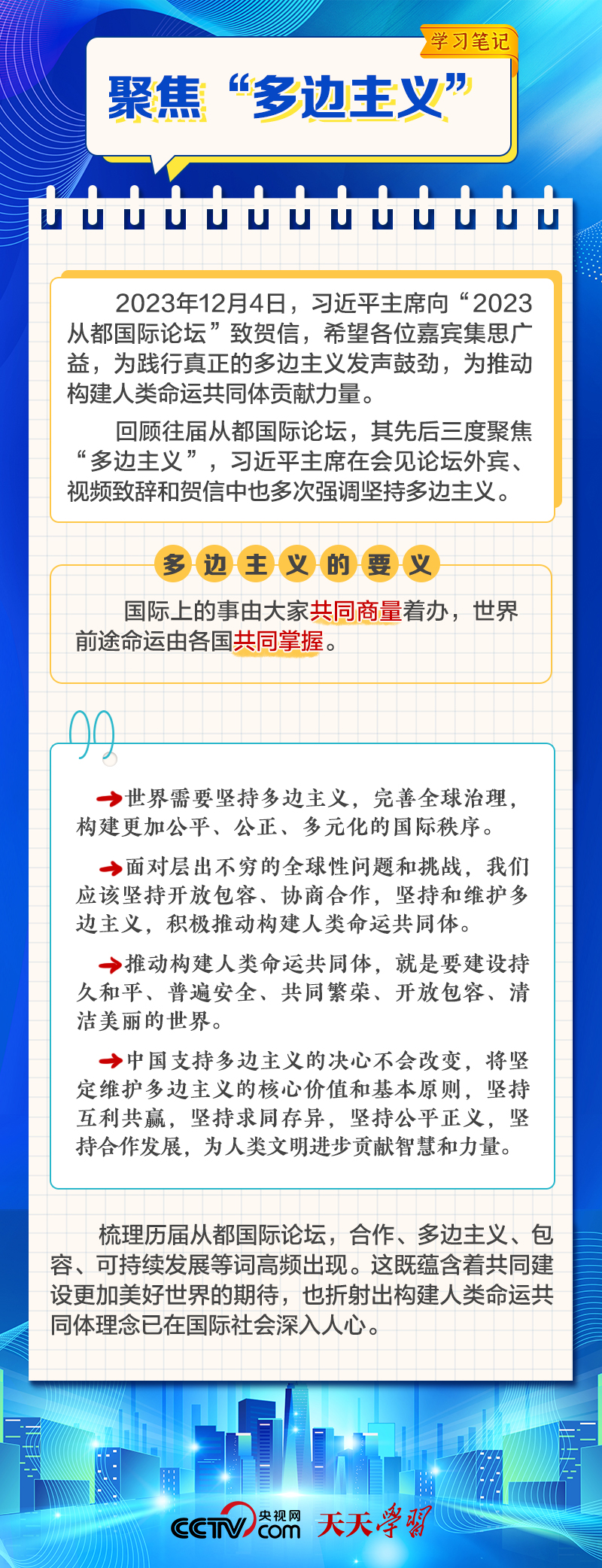 天天學(xué)習(xí)12月4日,習(xí)近平主席在致“2023從都國(guó)際論壇”的賀信中強(qiáng)調(diào),面對(duì)前所未有的世界之變、時(shí)代之變和歷史之變,人類社會(huì)必須團(tuán)結(jié)起來,堅(jiān)持互學(xué)互鑒、開放包容、合作共贏,弘揚(yáng)全人類共同價(jià)值,共同建設(shè)更加美好的世界。